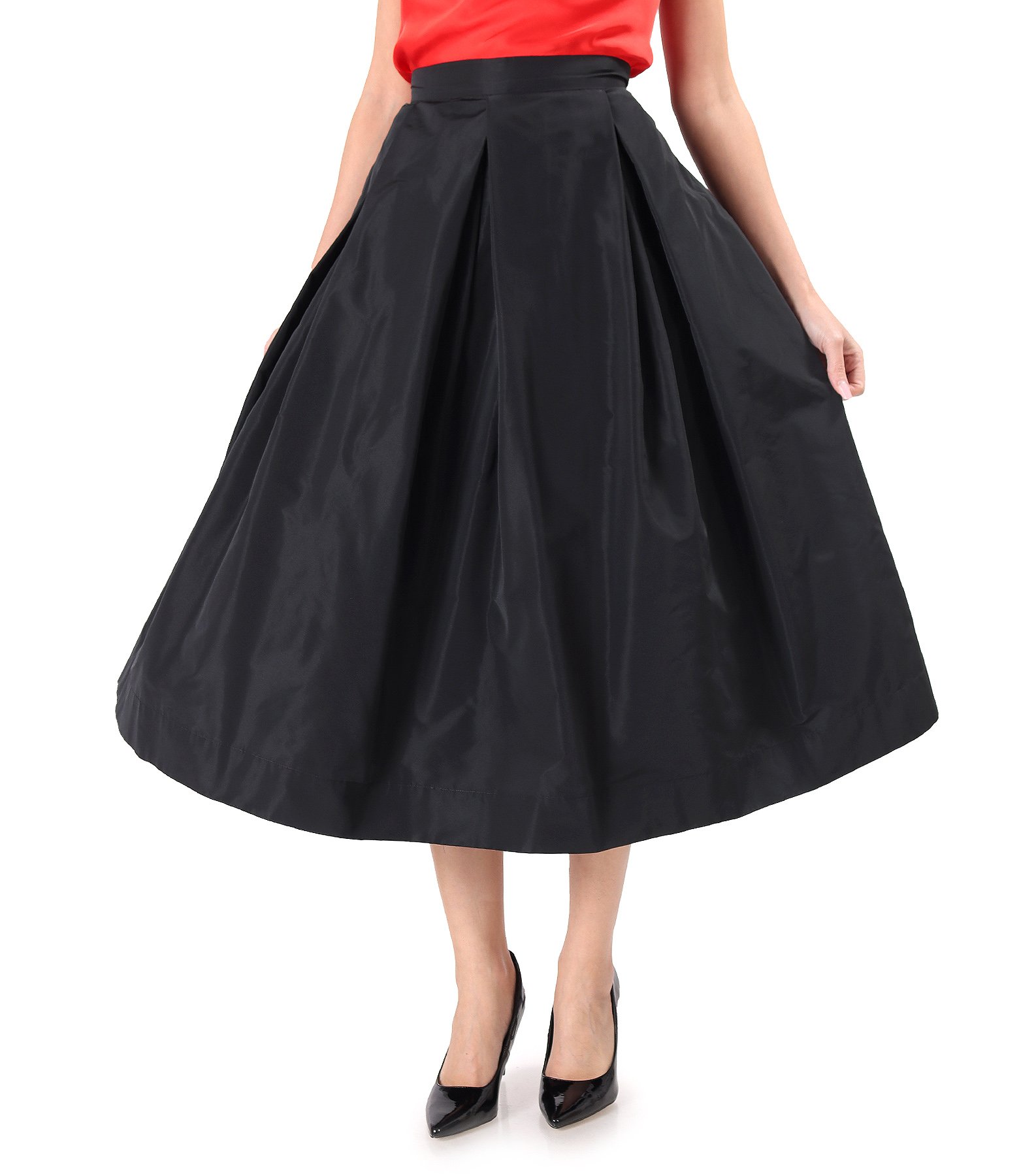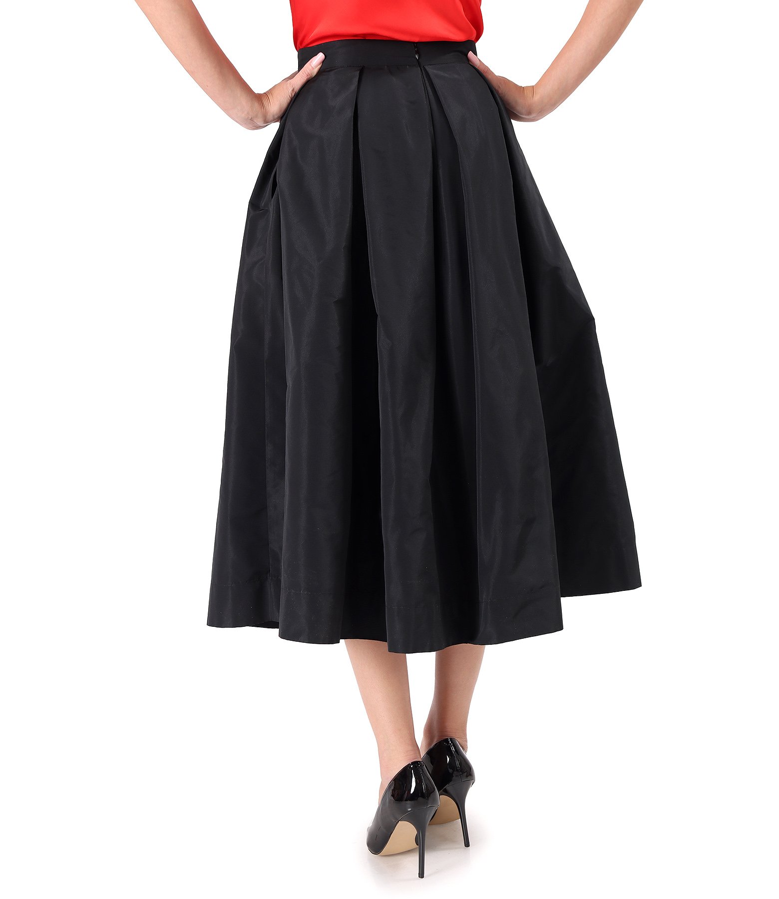 Fusta midi clos din tafta usoara cu efect mat (Black), size