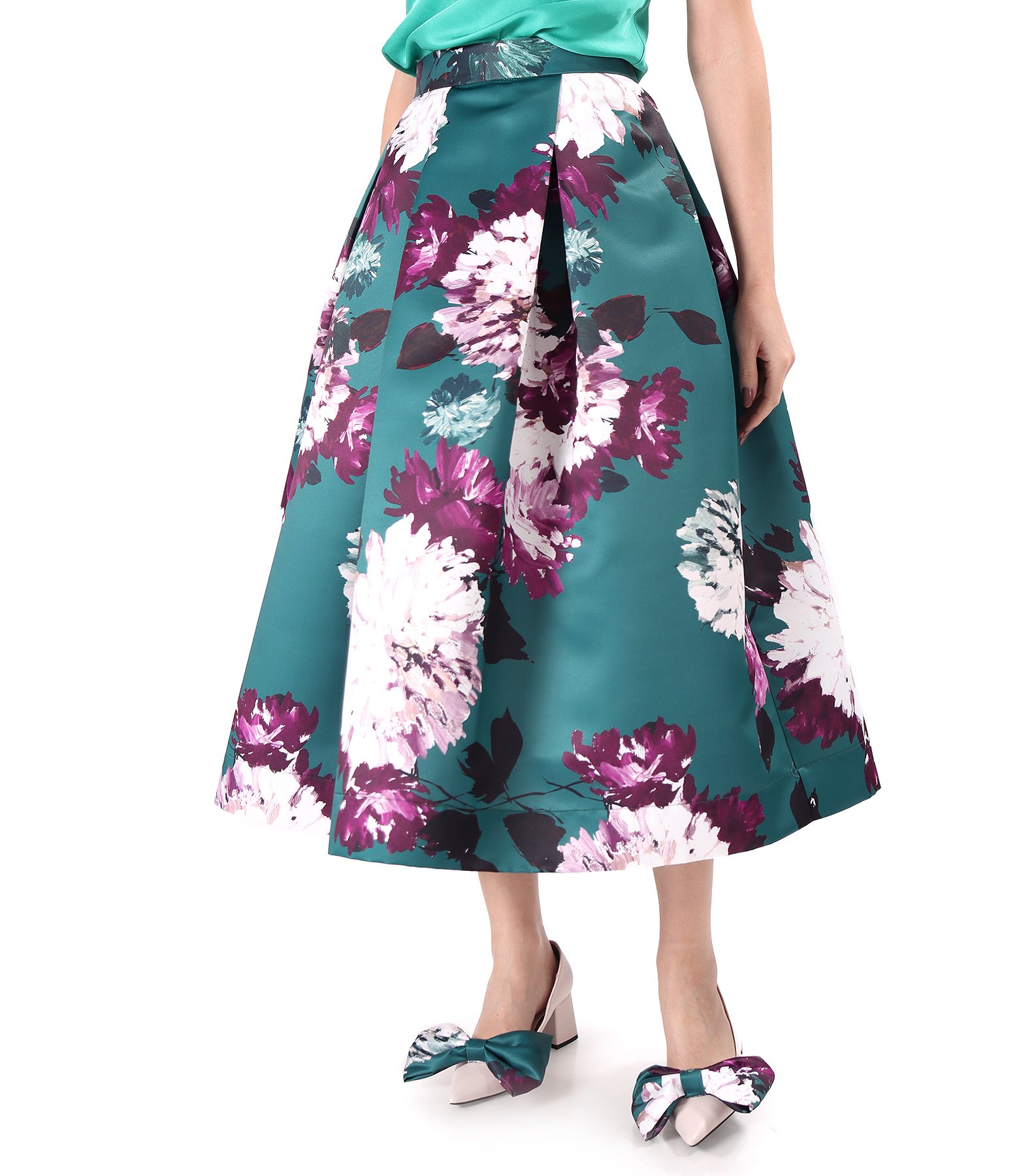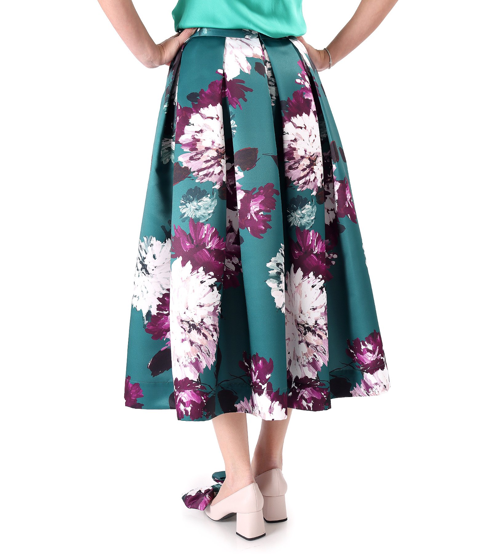 Fusta midi clos imprimata cu flori supradimensionate (Green), size