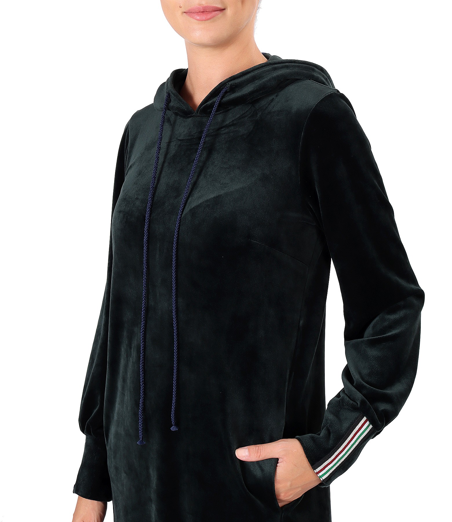 Hooded velvet dress with elastic lining on the cuffs (Green), size