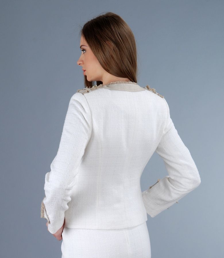 Cotton boucle jacket with virgin wool (Ivory-Beige), size