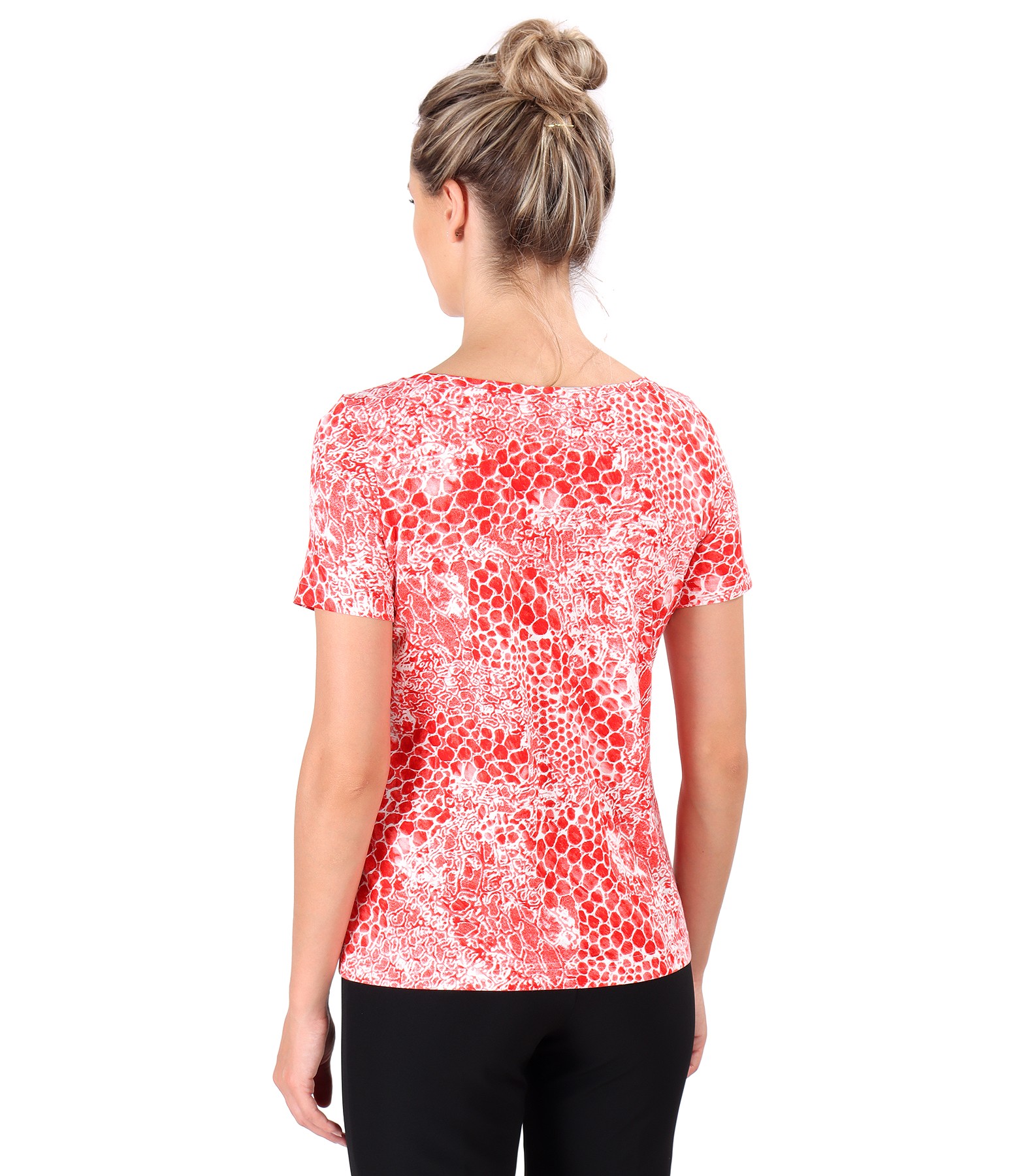 Elastic jersey blouse with 3d leopard print,with short sleeves.