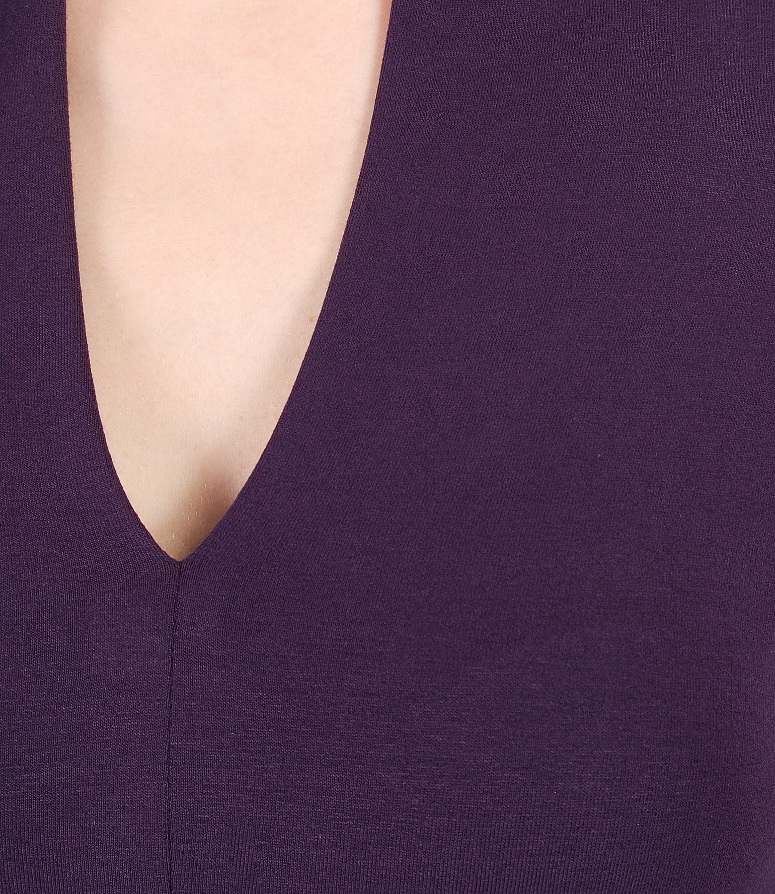Jersey blouse with deep neckline, front middle cut with fake collar of the shoulder extension.