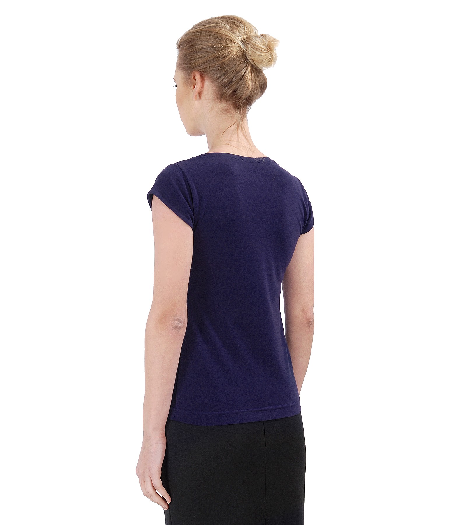 Elastic jersey t-shirt with wing type sleeves, doubled, with neckline folds.