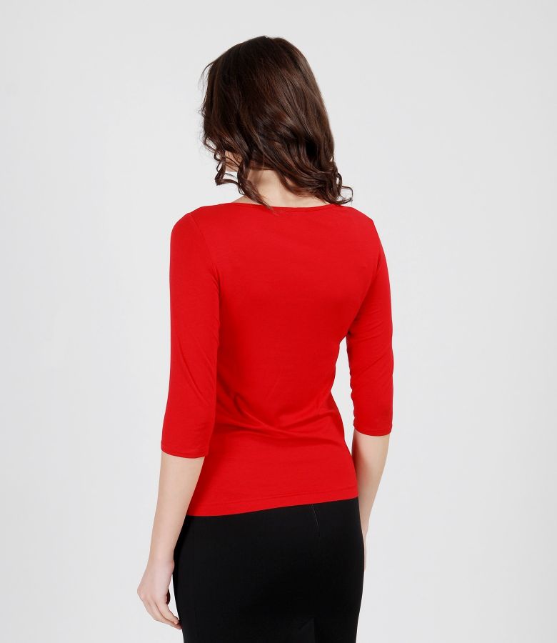 Jersey t-shirt with veil jabot, round neckline and 3/4 sleeves.