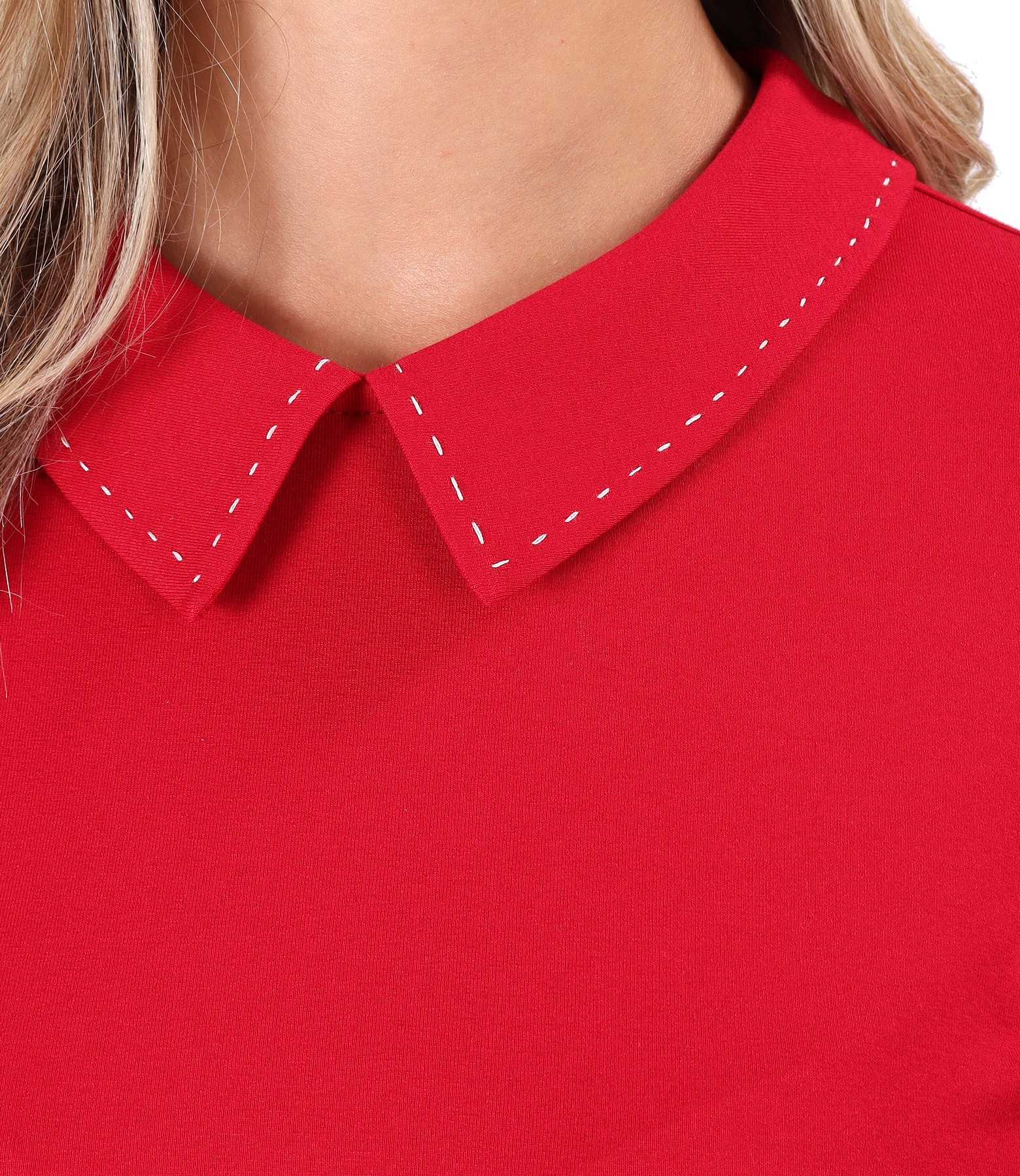 Elastic jersey blouse , with 3/4 sleeves and sharp collar with contrasting stitch. Closes with a button on the back.