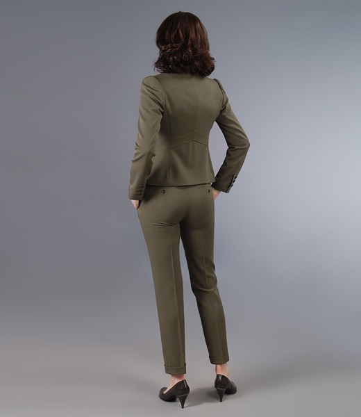 * office kaki jacket of elastic fabric with straight collar and lapels