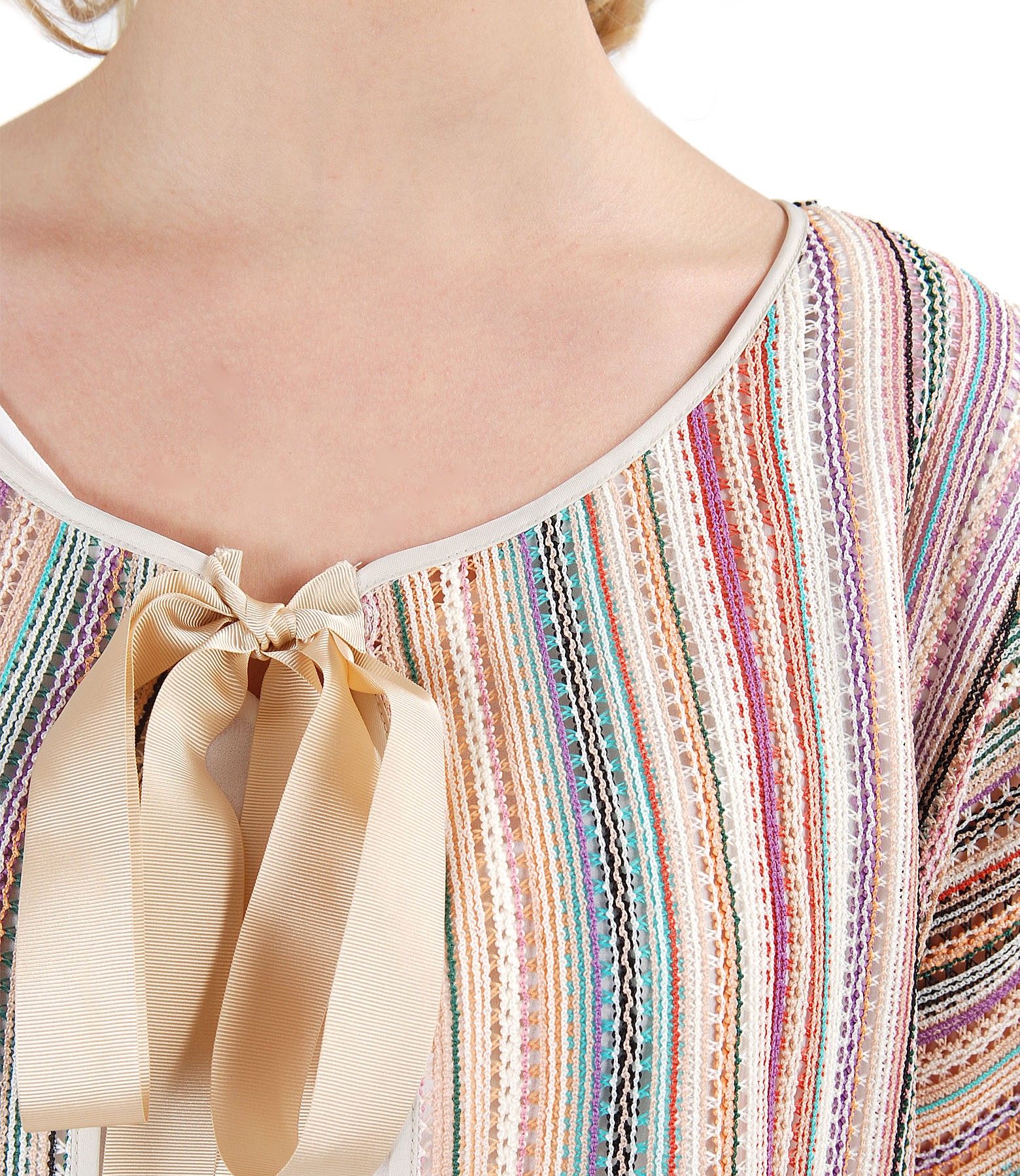 Lace bolero, with 3/4 kimono sleeves. Closes with front rips bow.
