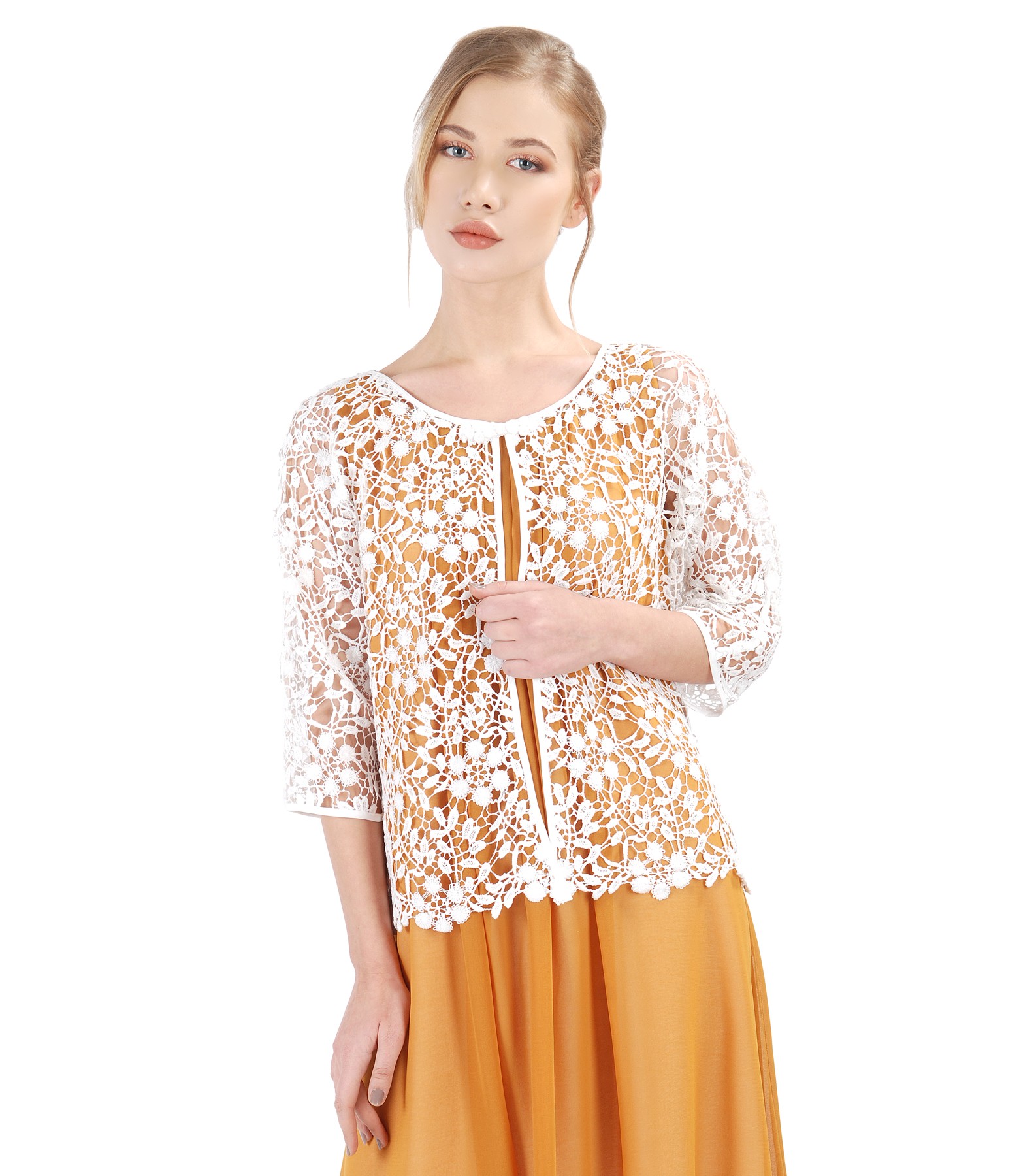 Lace bolero with floral motifs (Withe), size