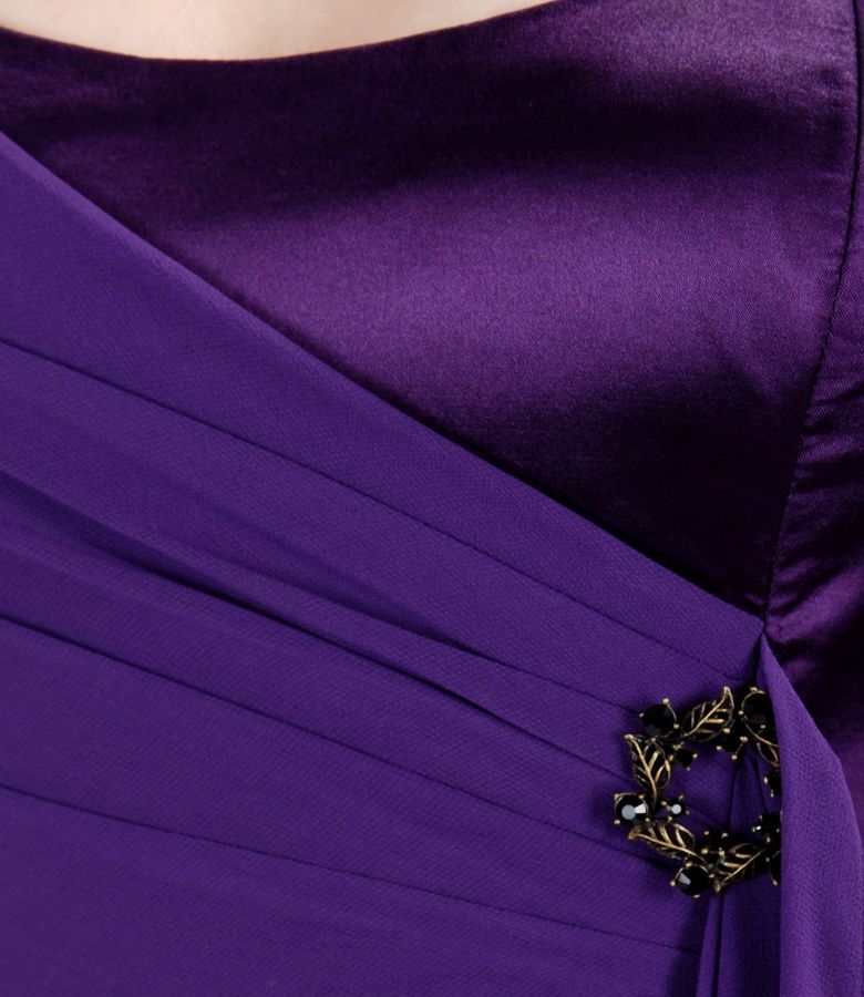 Long veil dress with elastic satin and veil corsage and flared skirt with pleats in waist, doubled with matching elastic satin. Asymmetric veil fold on front corsage, detachable accessory. Middle-back concealed zip fastening; the corsage tightens on middle-back.