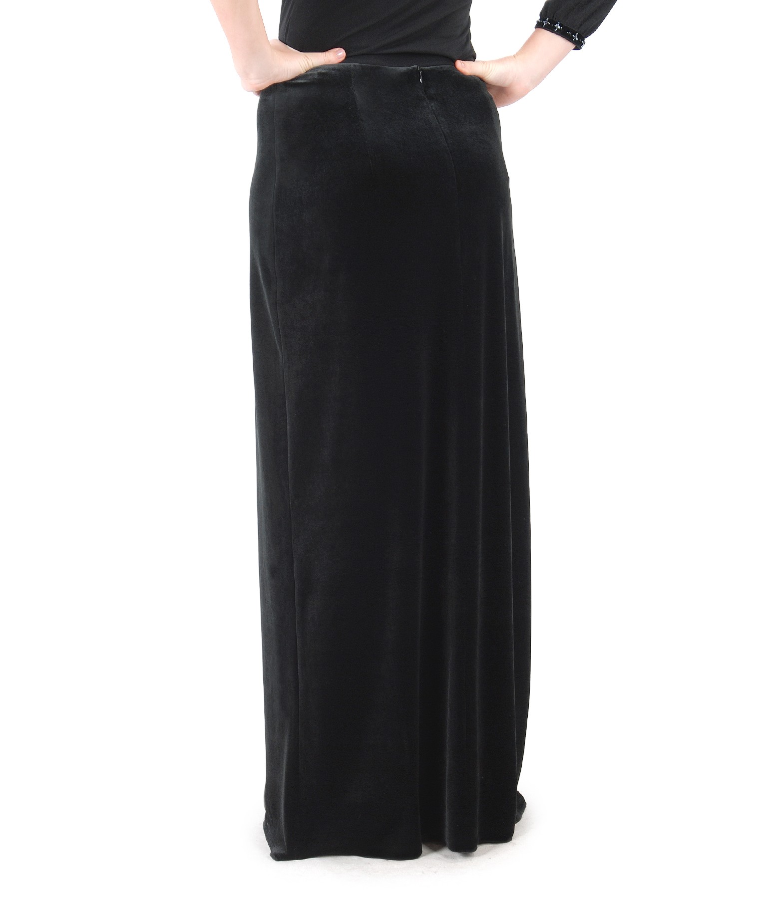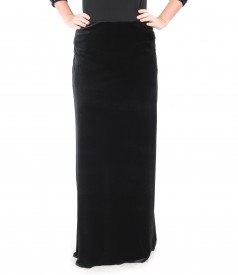 Coated skirt, made of elastic velvet, flaring, high-waisted. Closes with hidden zipper on the middle back.