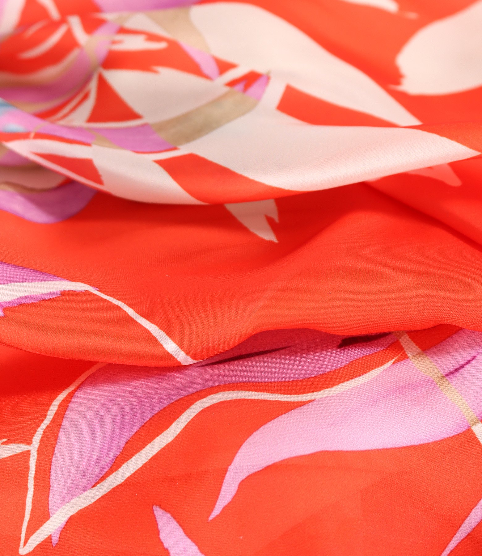 Long evening dress made of veil printed with floral motifs (Coral red), size