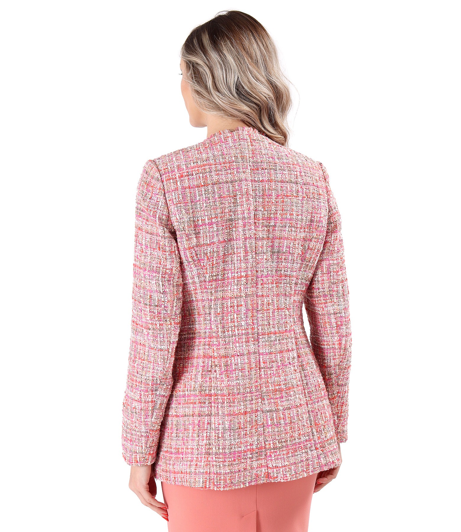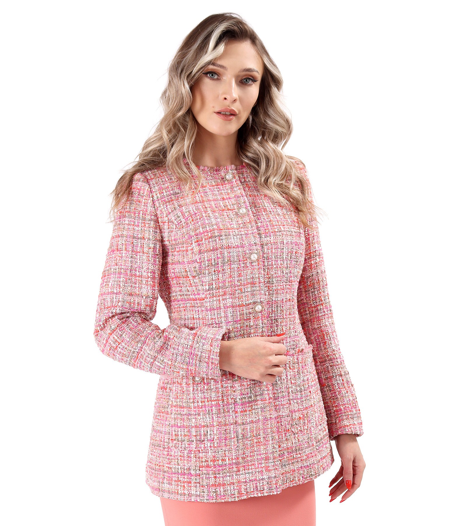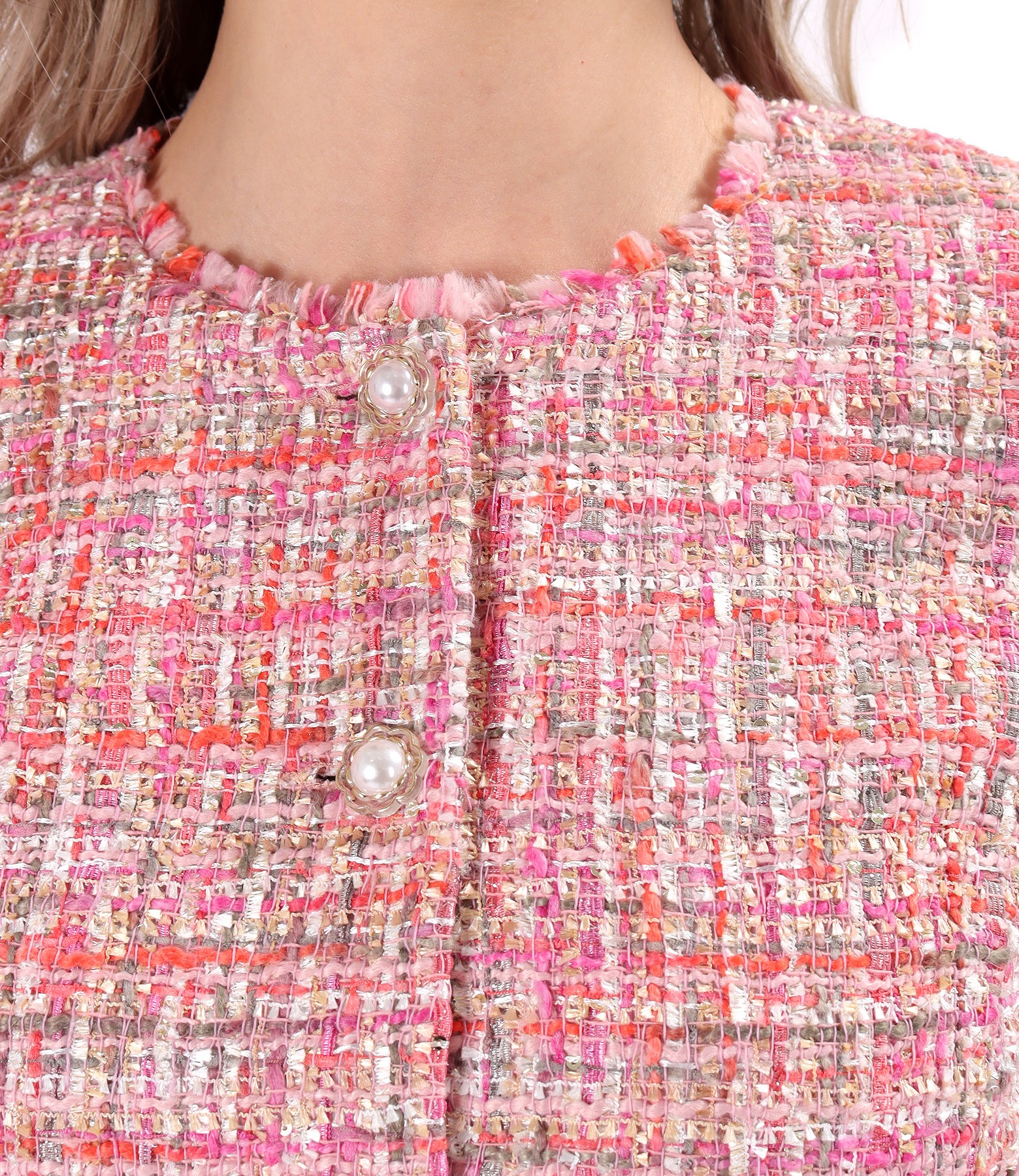 Long jacket made of multicolored curls with metallic thread (Pink), size