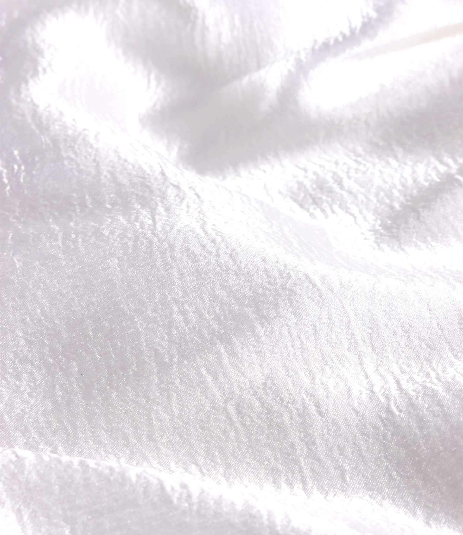 Long satin dress with asymmetric ruffles, unlined, round neckline, and short sleeves. It closes with 6 buttons on the middle back.