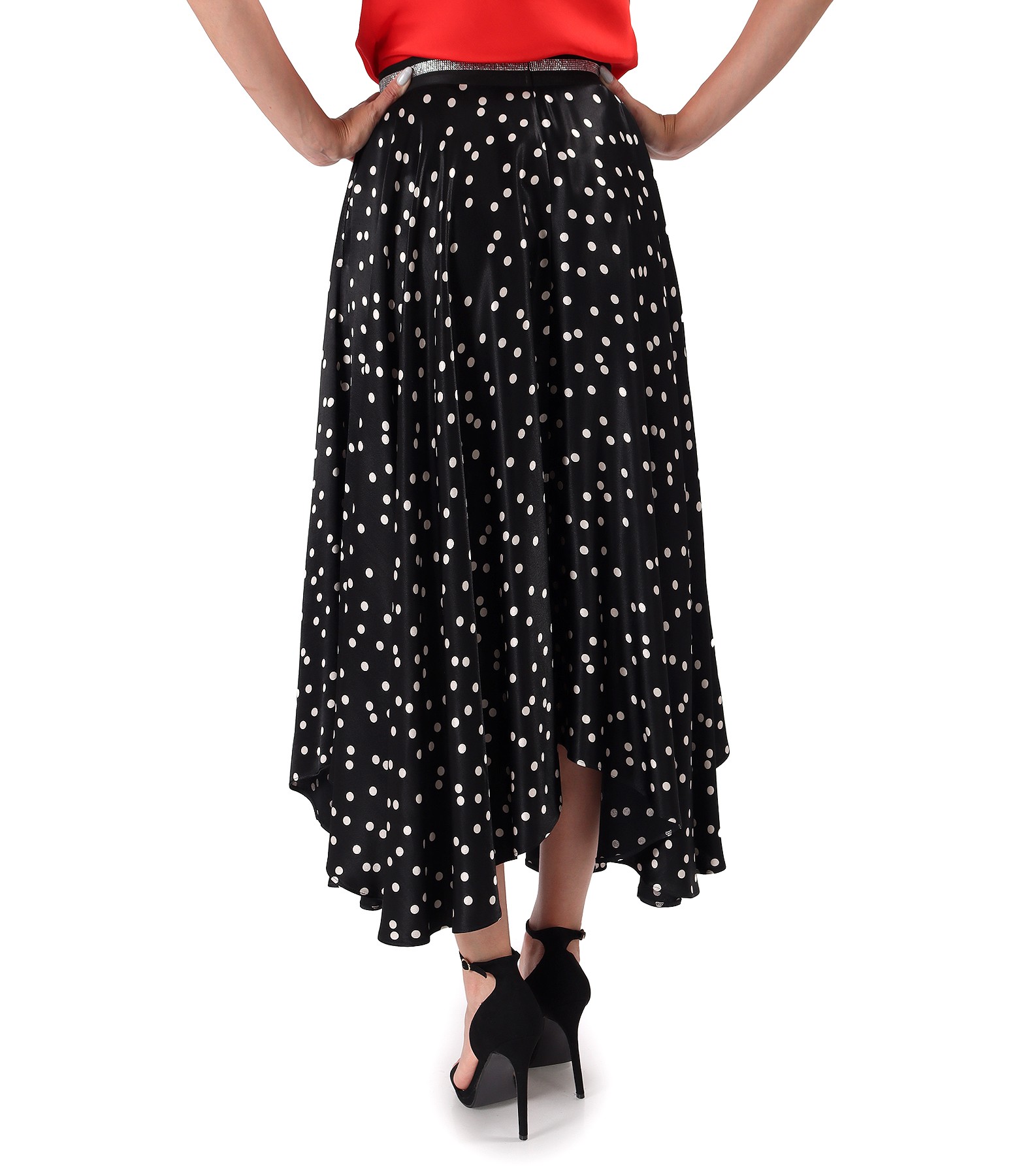 Long skirt made of satin viscose printed with polka dots (Black), size