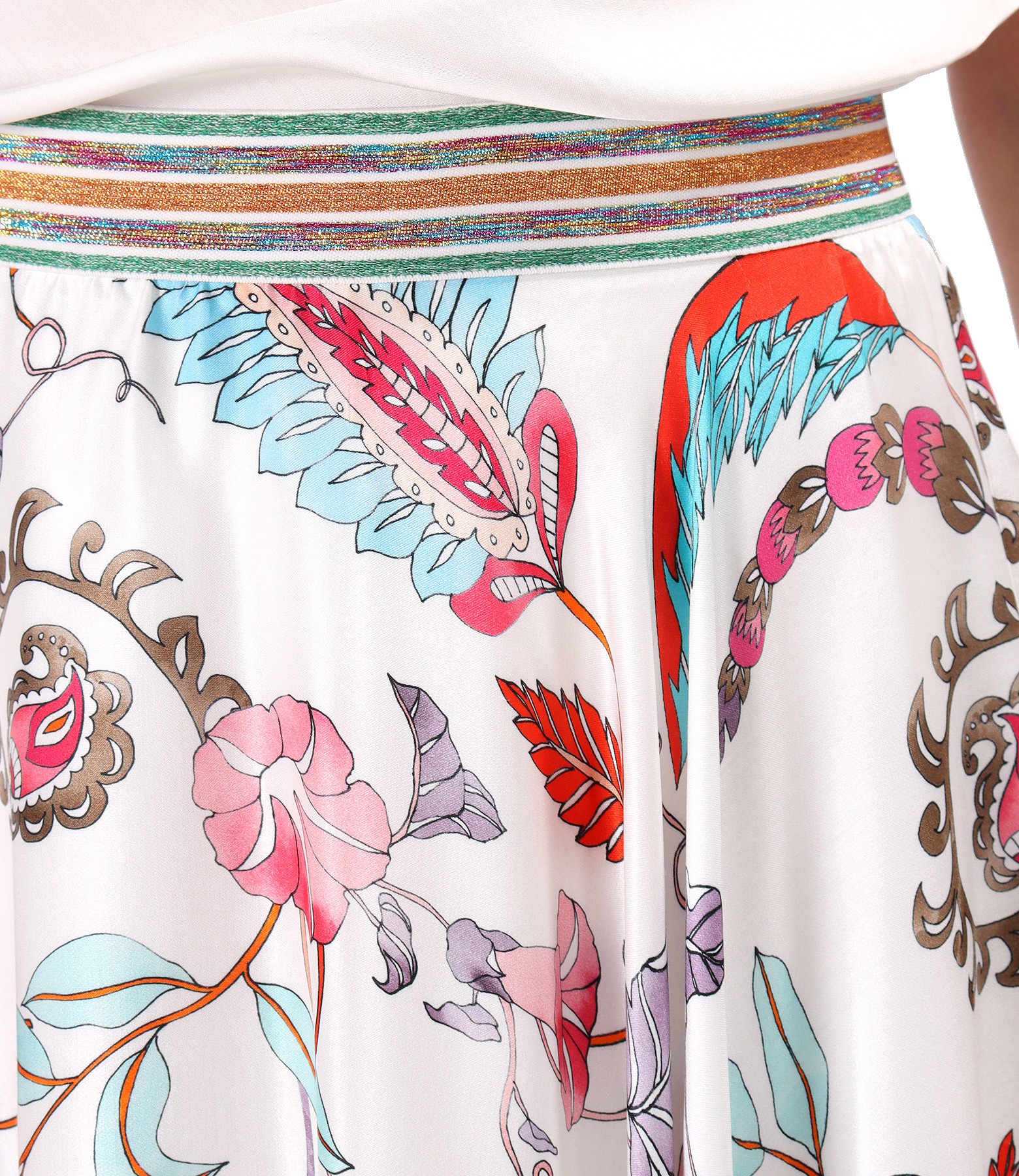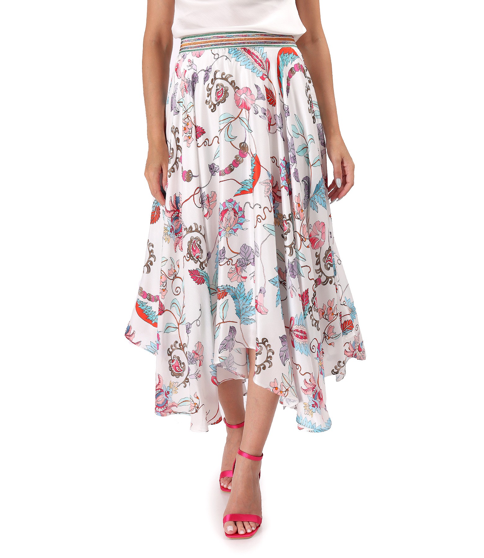 Long skirt made of viscose with silk digitally printed with floral motifs (White), size