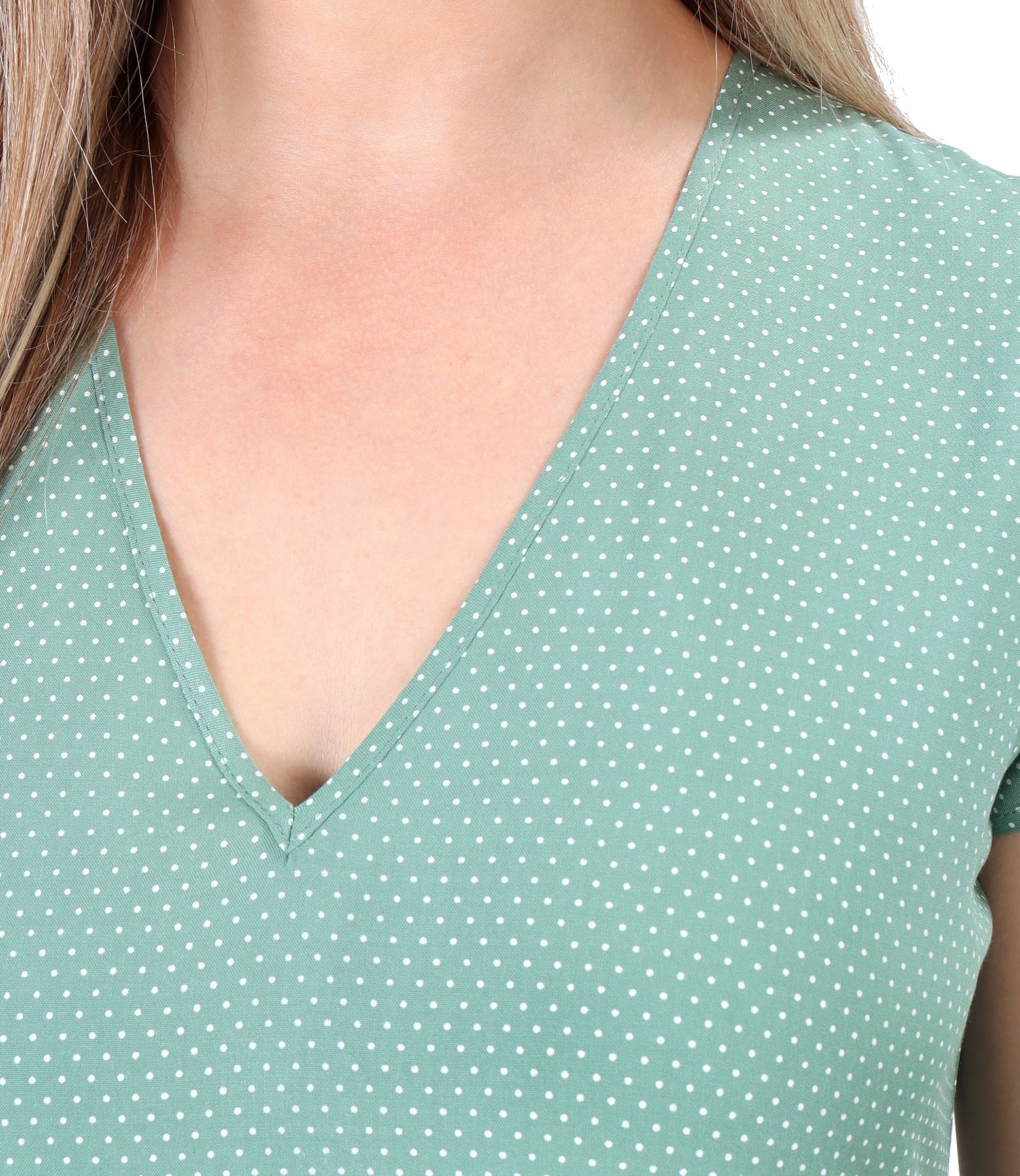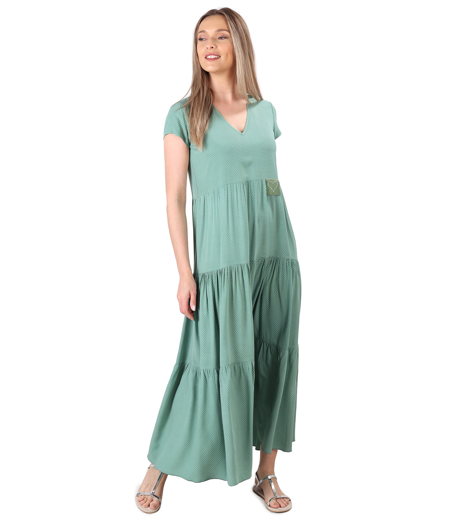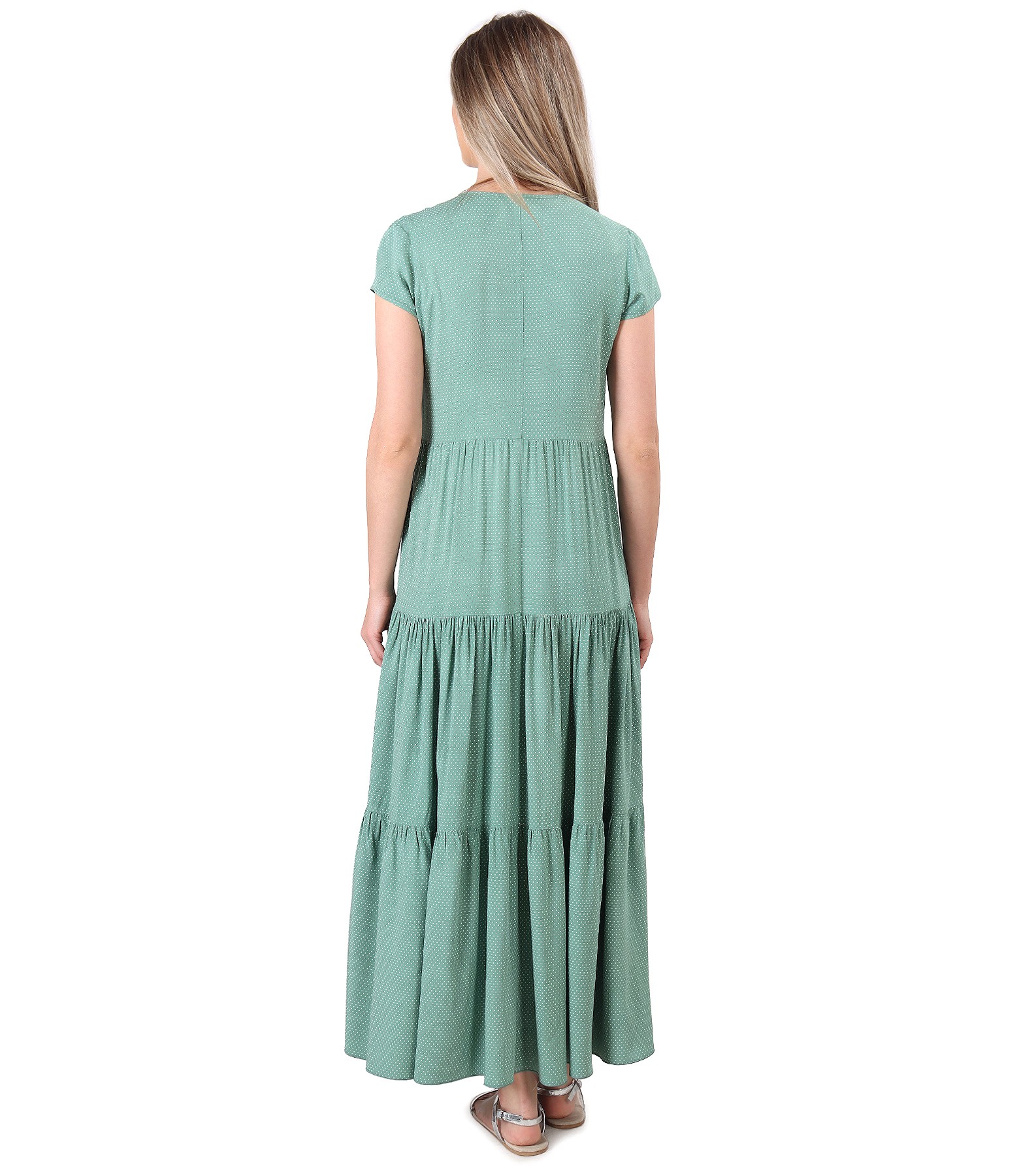 Long viscose dress with ruffles printed with dots (Mint Green), size