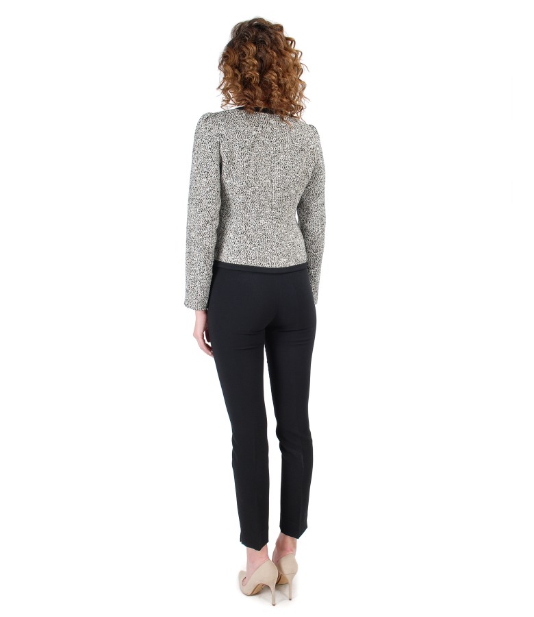 Office jacket made of loops with cotton, without collar, with trim, embellished with crystals from® on front.