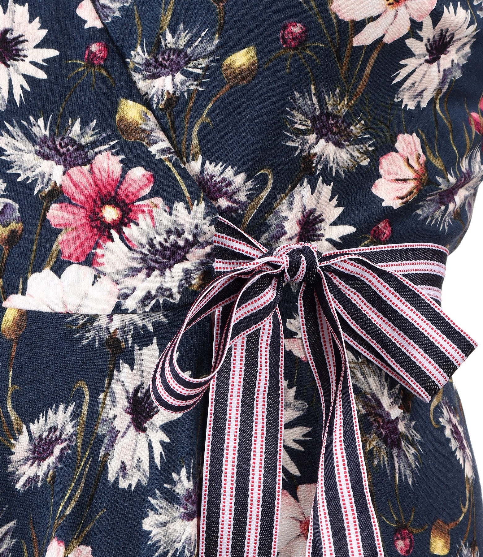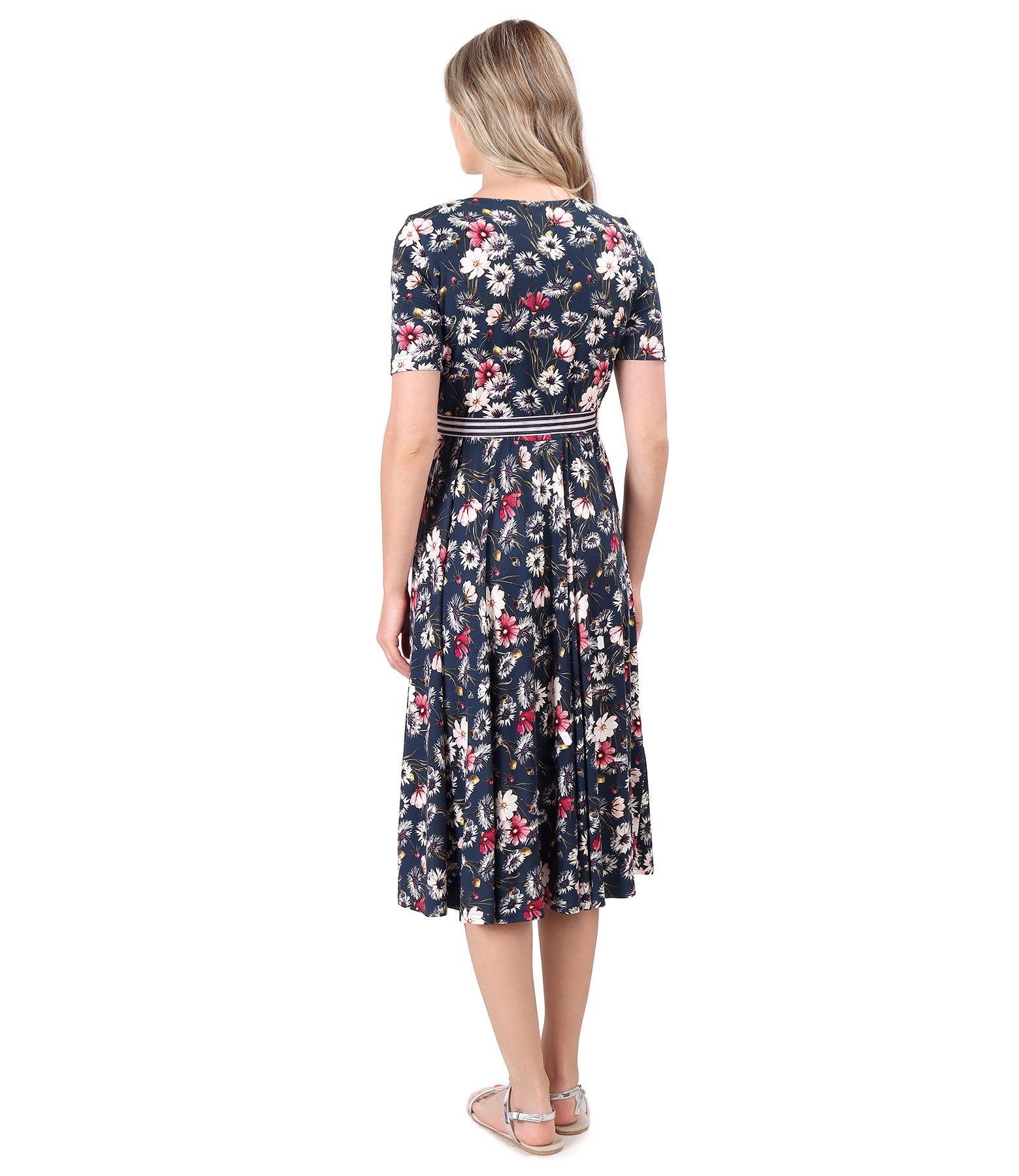 Midi dress made of elastic jersey printed with floral motifs (Navy Blue), size
