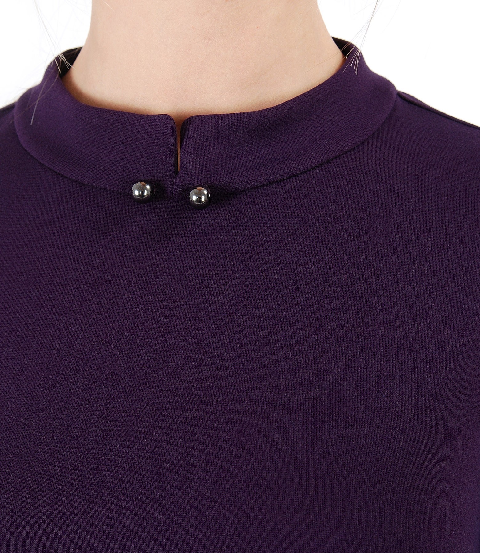 Elastic jersey dress, tunic collar, long sleeves and side pockets. Closes with a metallic zipper on the middle back.