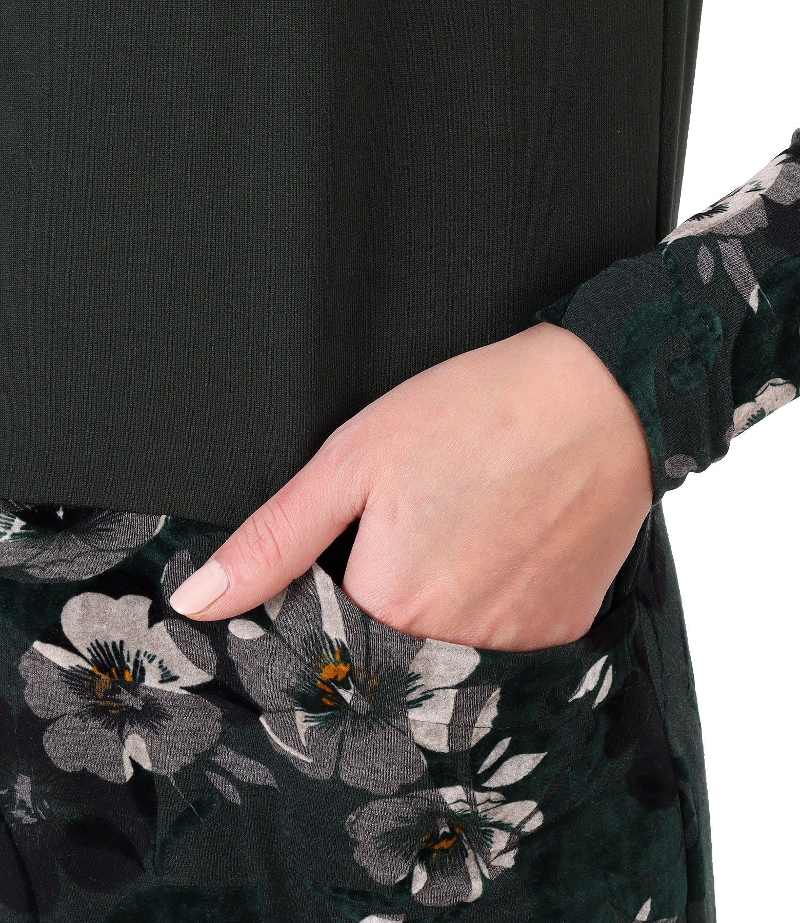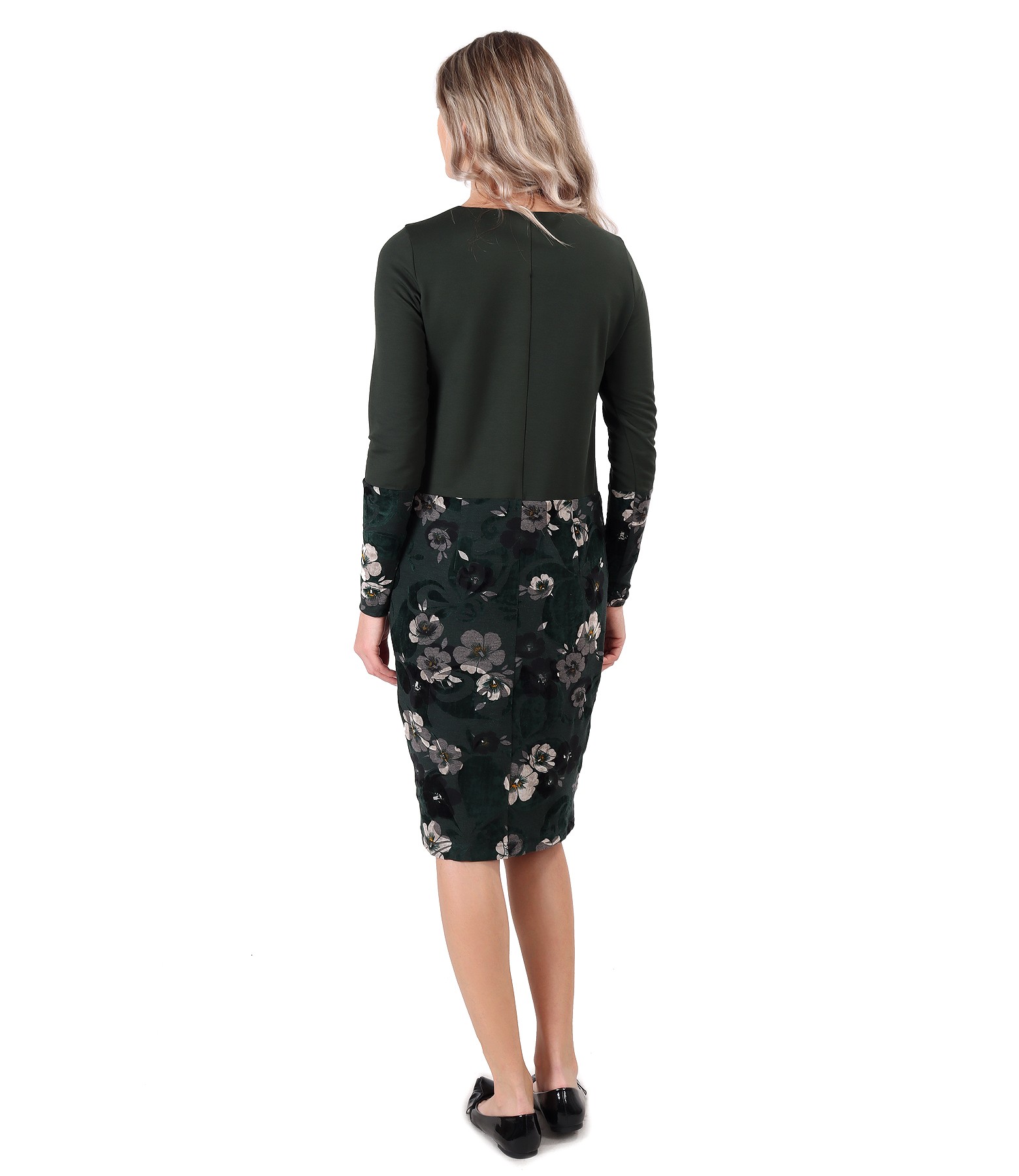 Midi dress made of soft elastic jersey and brocade velvet with floral motifs (Green), size