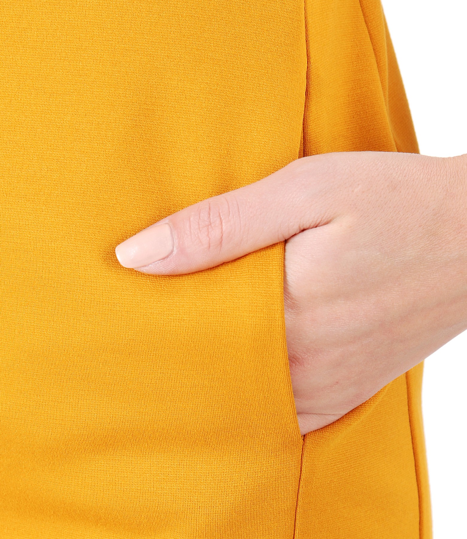 Midi dress made of thick elastic jersey with side pockets (Mustard-Yellow), size