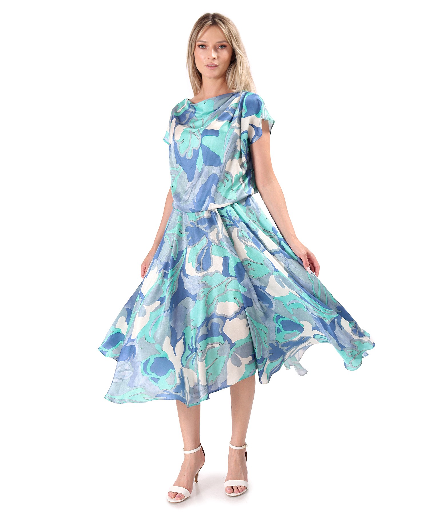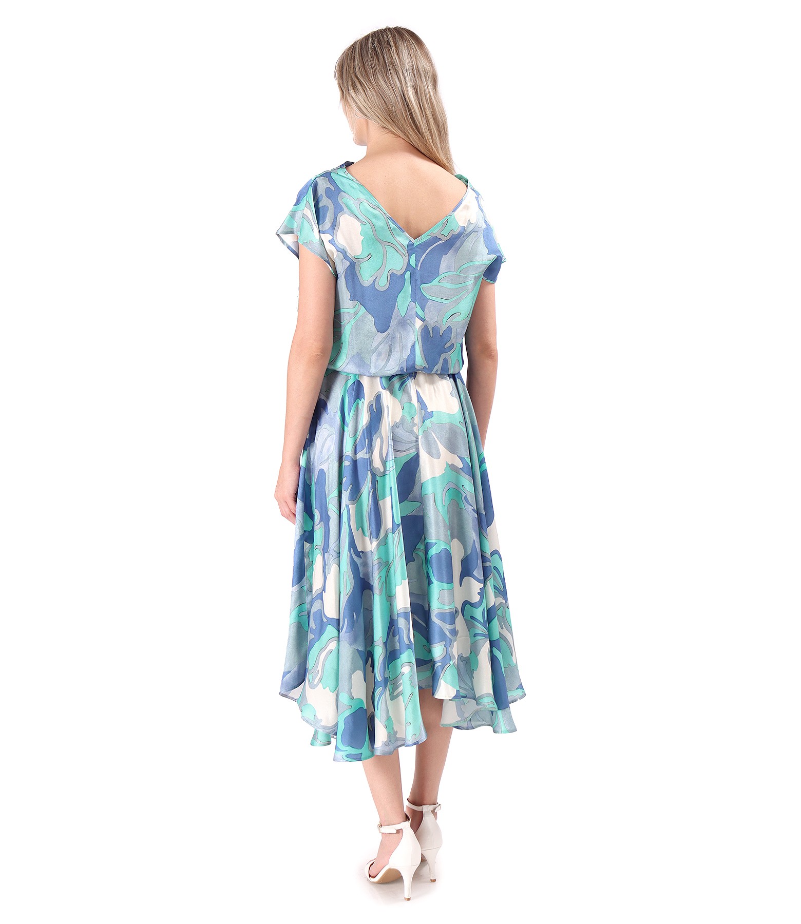 Midi dress made of viscose with natural silk digitally printed (Blue), size