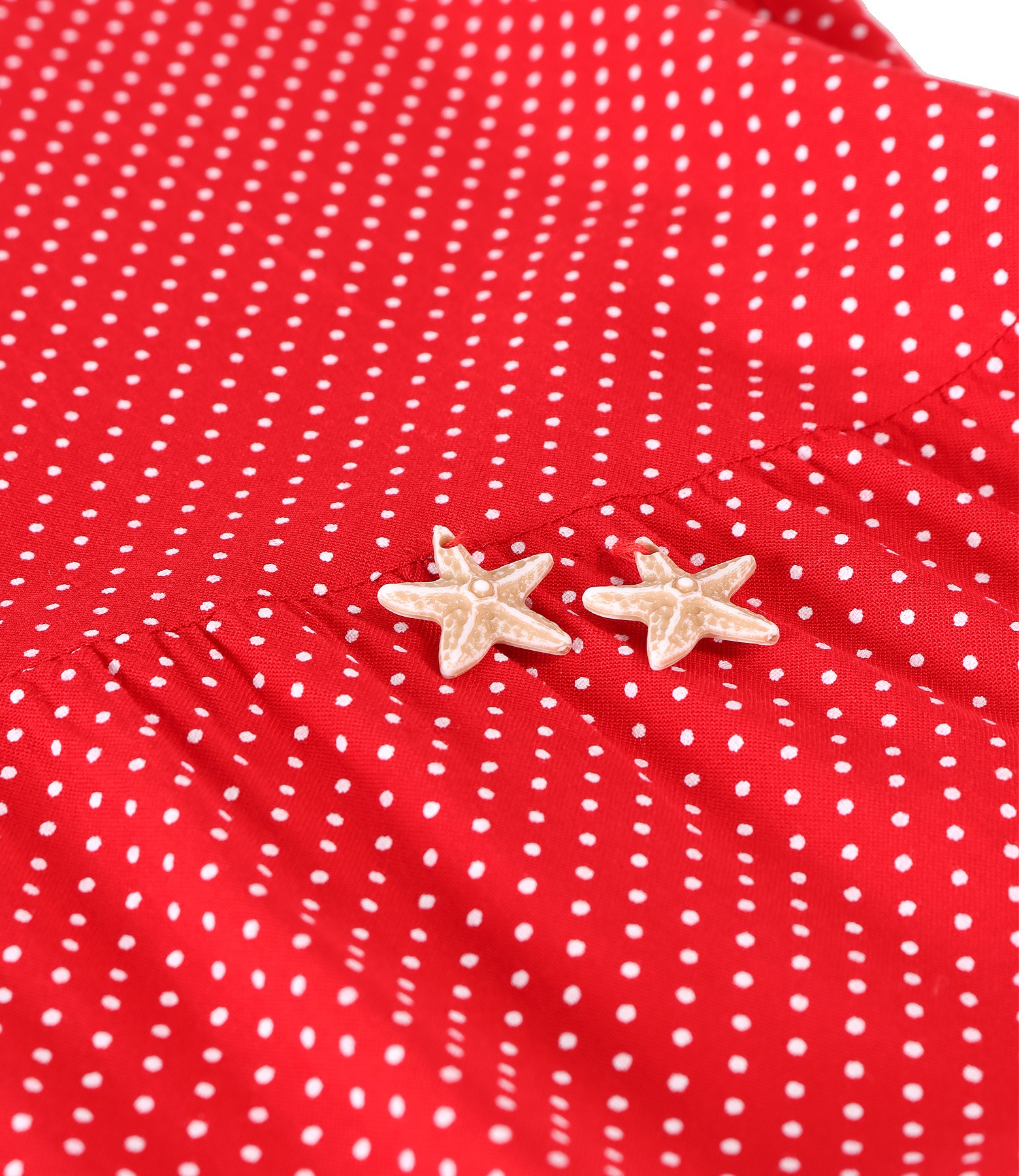 Midi dress with ruffles made of viscose printed with dots (Red), size