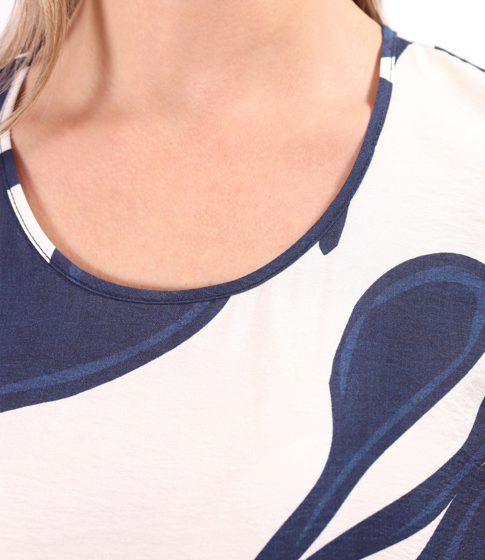 Midi dress with ruffles made of viscose printed with floral motifs (Navy blue), size