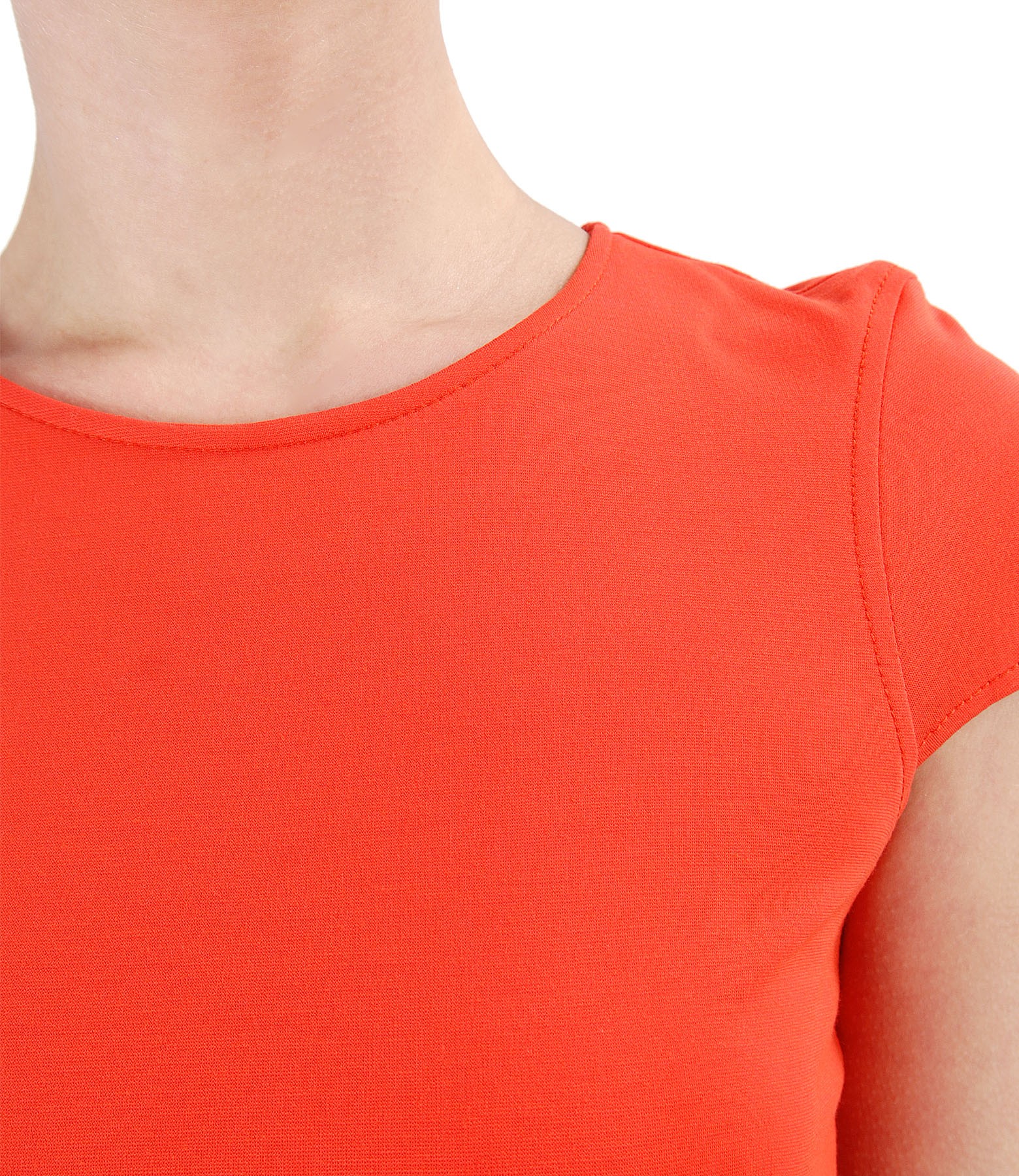 Midi elastic jersey dress with viscose, unlied, with short sleeves and round low-cut neck. Closes with hidden zipper in the middle back.