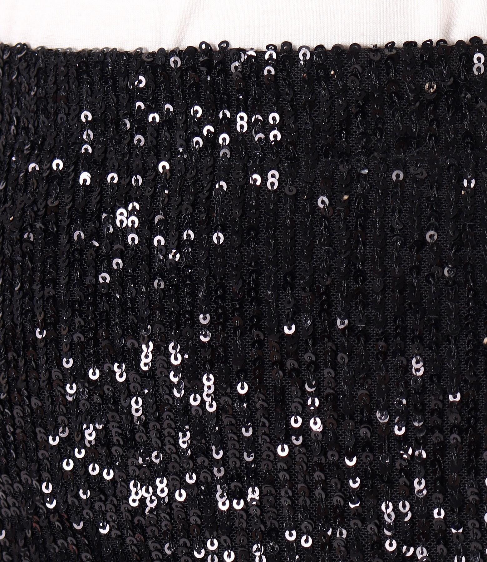 Sequined midi evening skirt doubled with satin. It closes with a hidden zipper on the middle back.