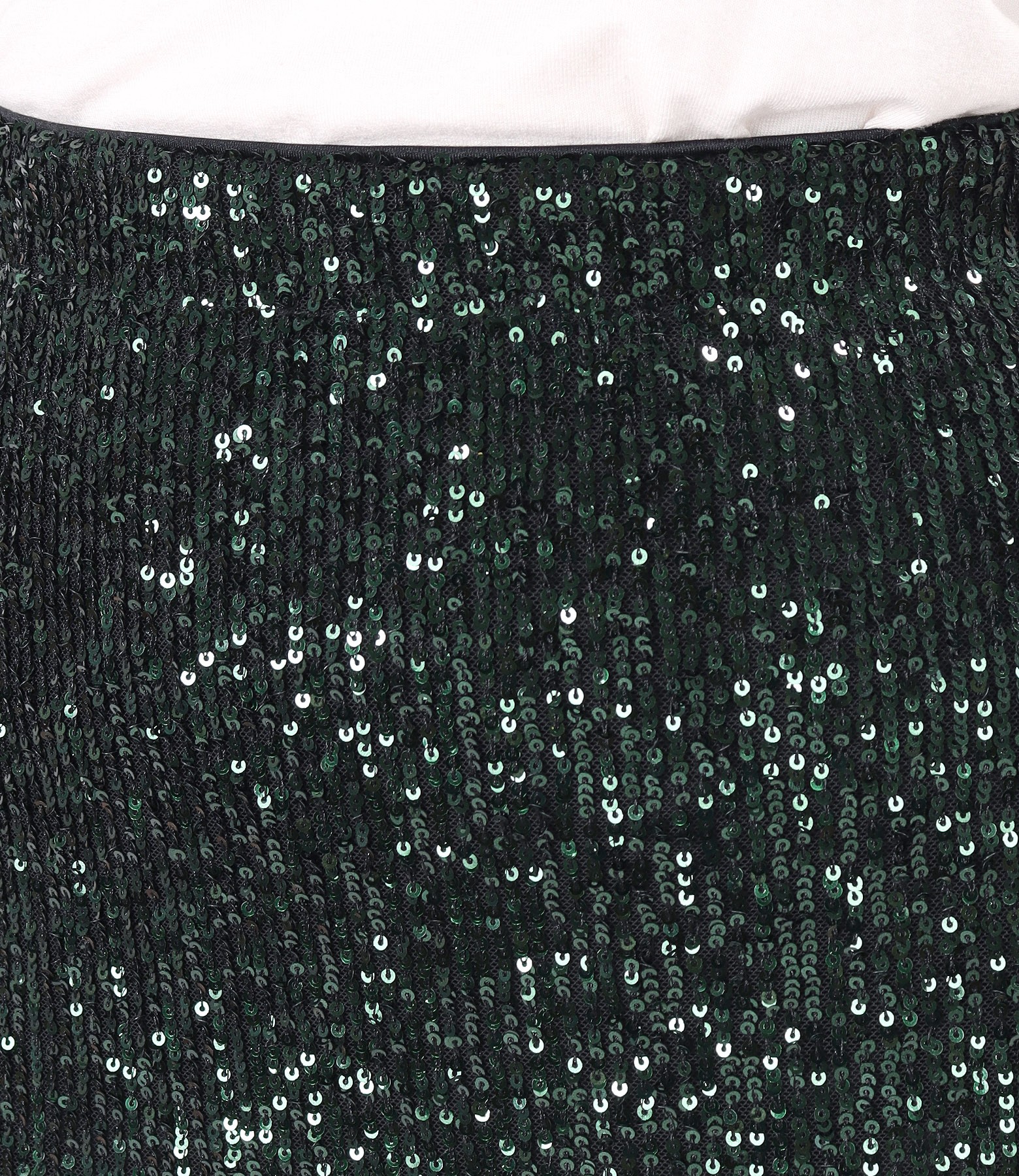 Sequined midi evening skirt doubled with satin. It closes with a hidden zipper on the middle back.