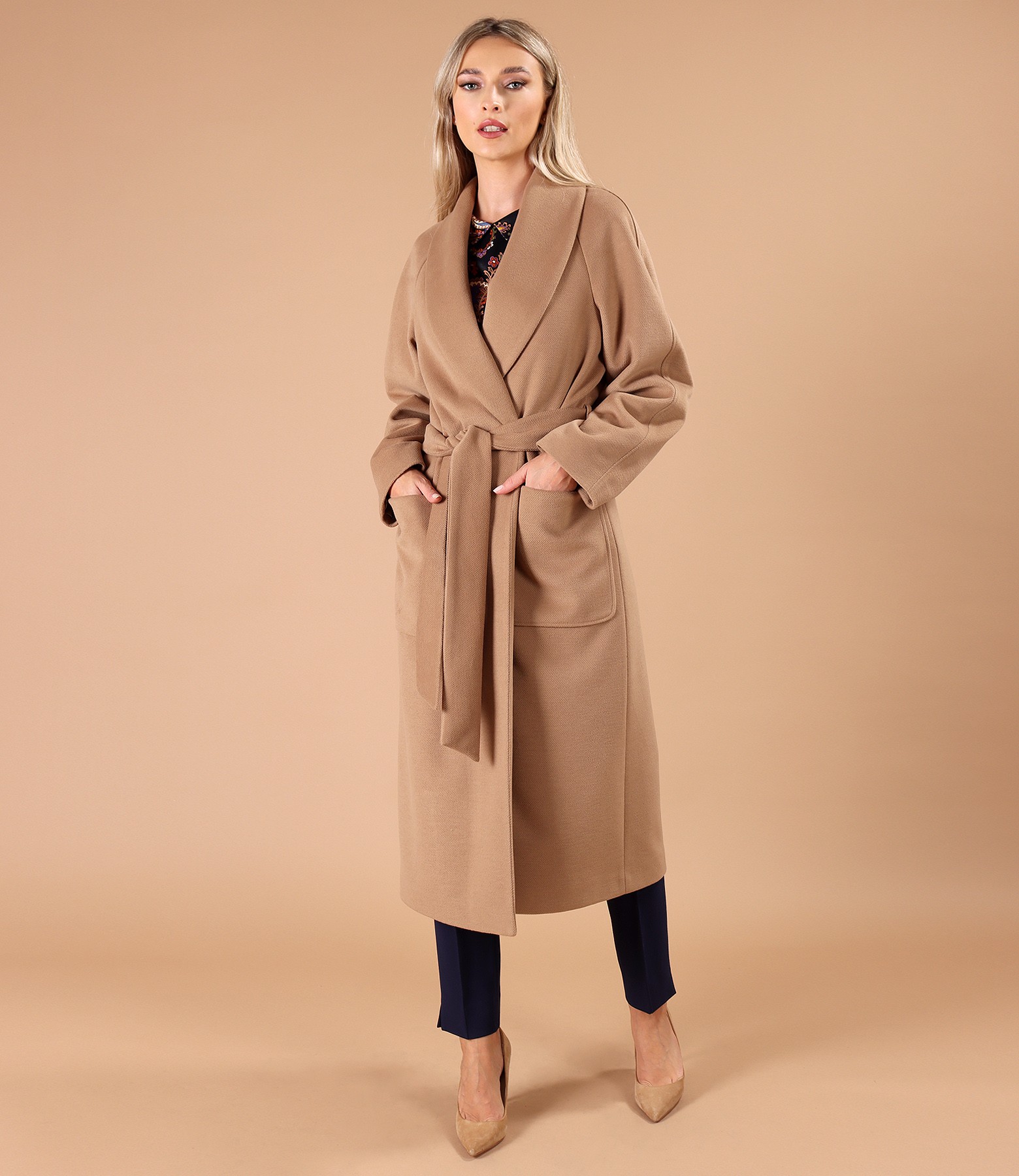 Midi overcoat made of thick fabric (Light brown), size