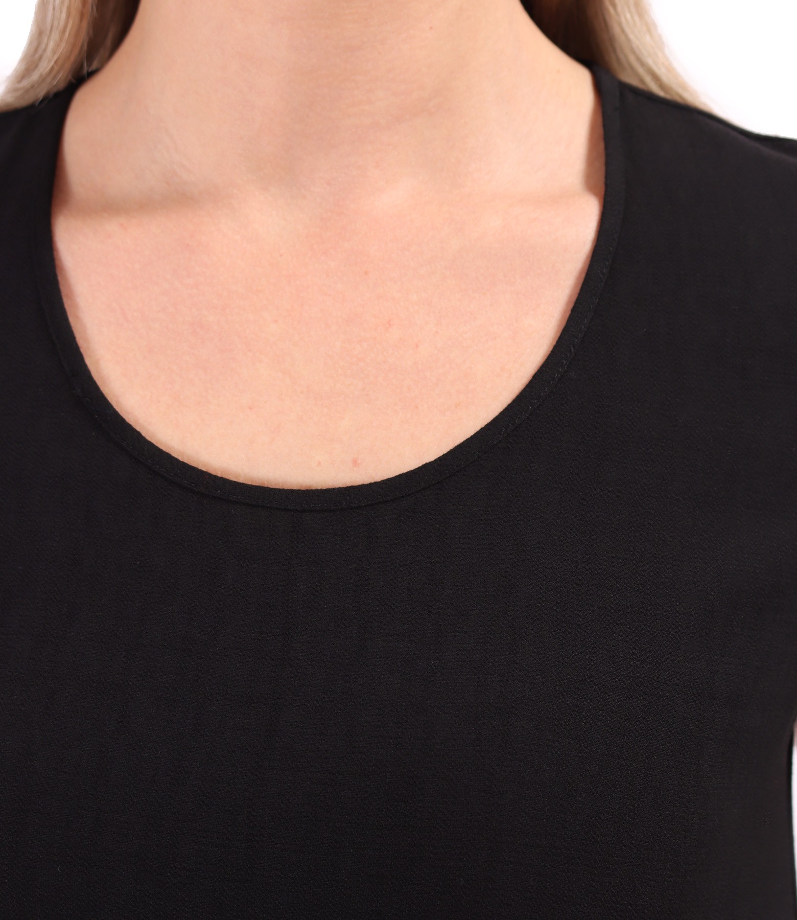 Midi dress with ruffles made of viscose, short sleeves, side pockets, and round neckline. It has no closing system.