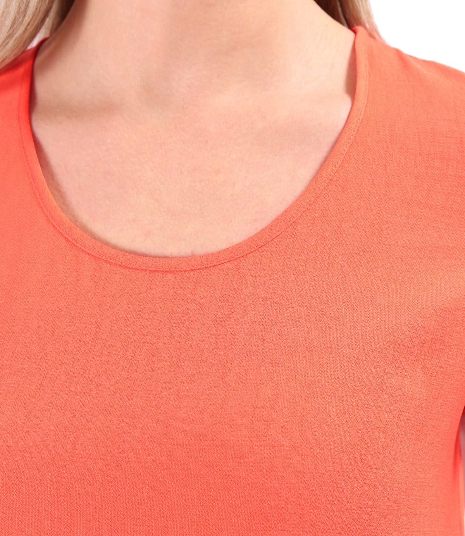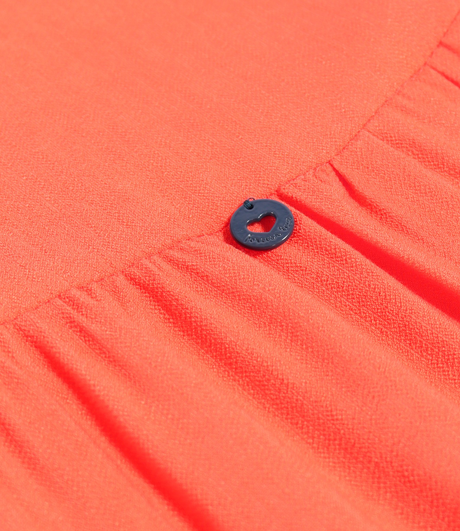 Midi dress with ruffles made of viscose, short sleeves, side pockets, and round neckline. It has no closing system.