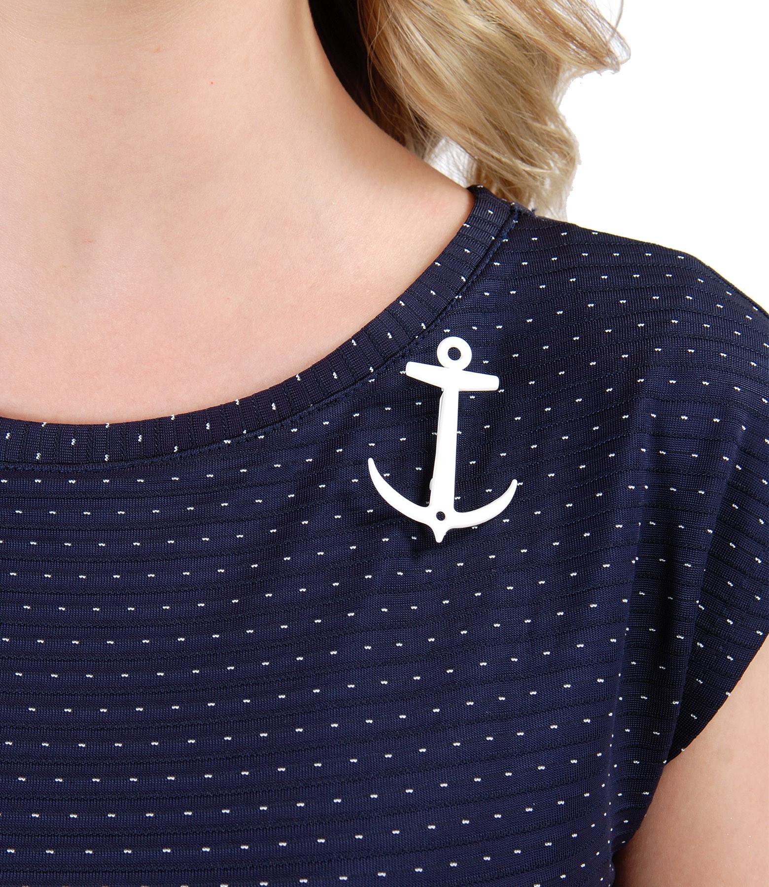 Viscose dress, unlined, with boat decolletage, drapping sleeves and accessory on the low-cut neck. Have no closing system.