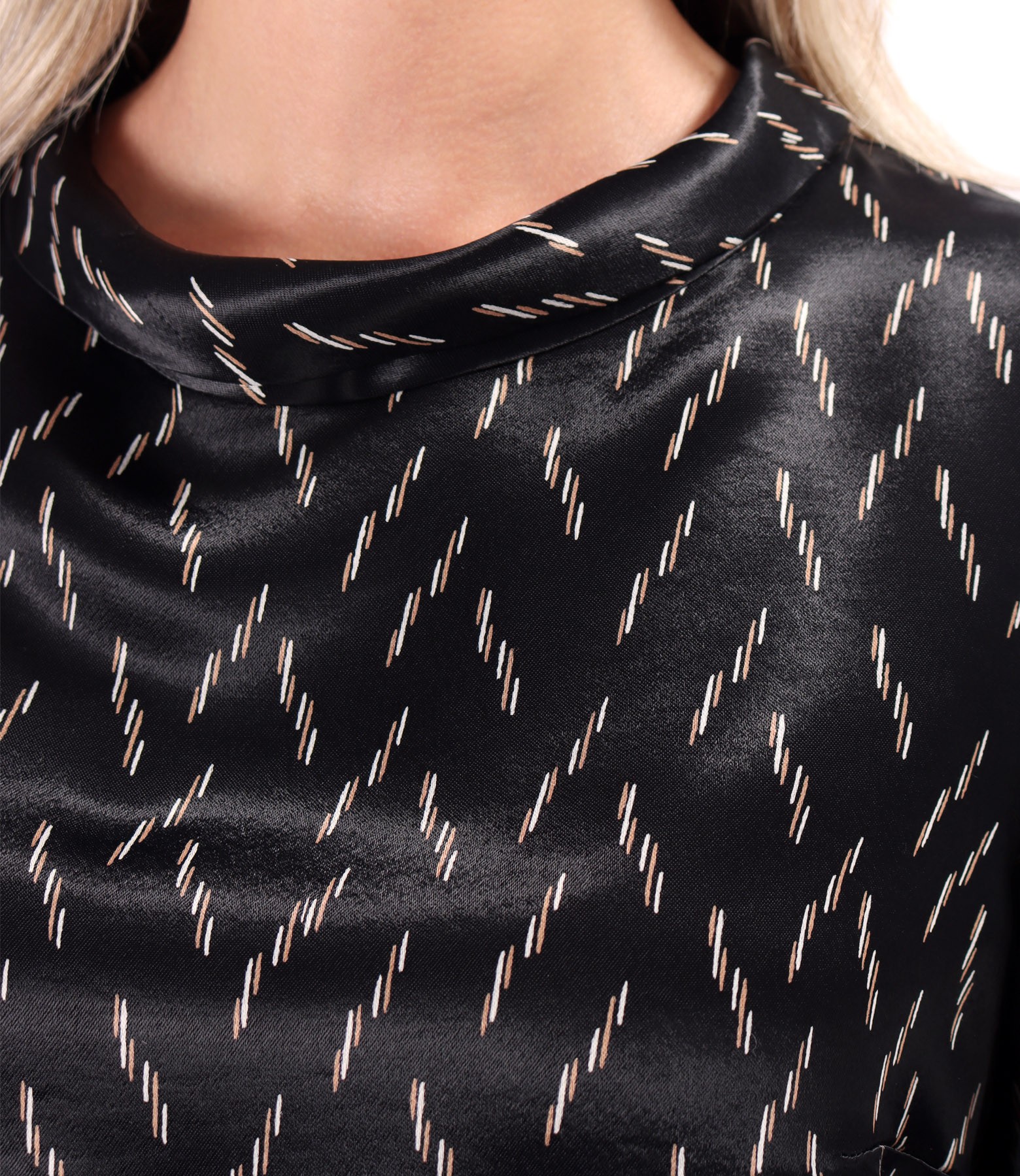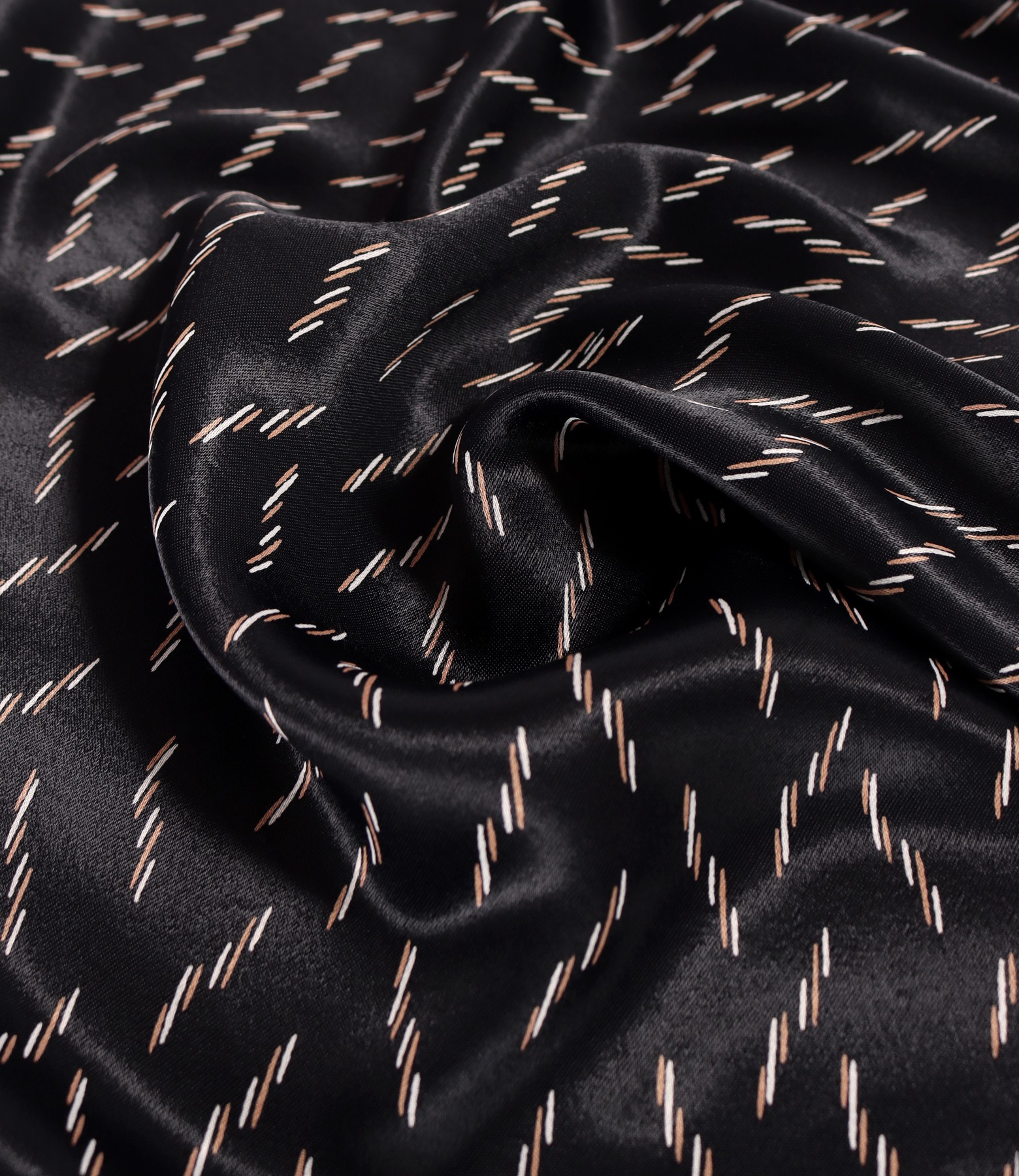 Midi viscose satin dress printed with geometric motifs (Black), size