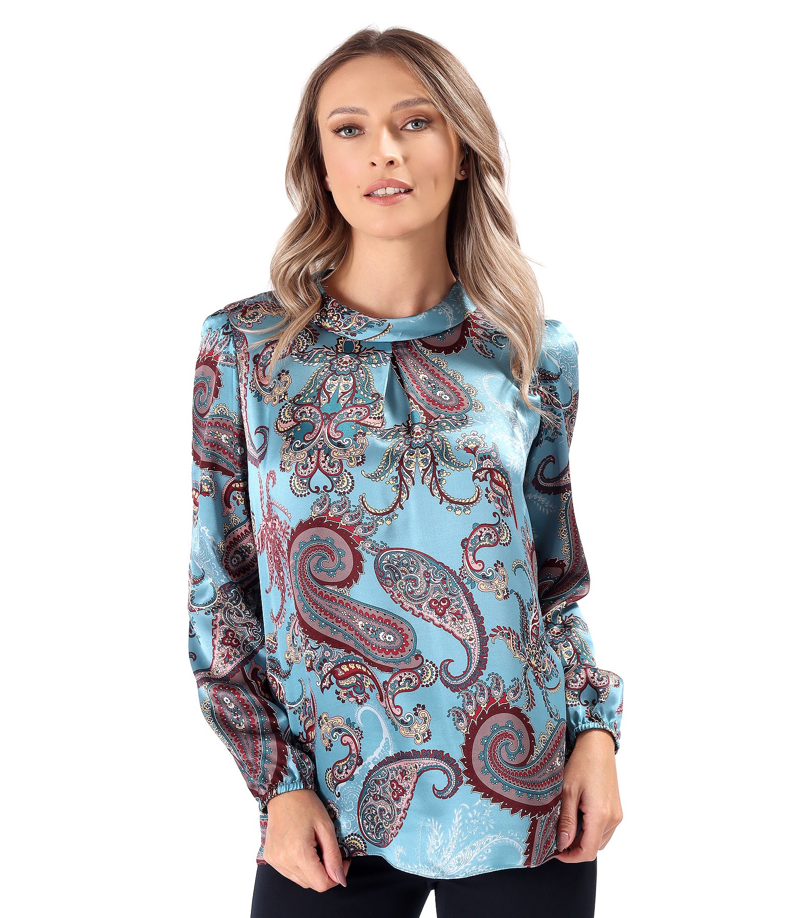 Natural Silk Blouse with Digitally Printed Paisley Motifs (Aqua blue), size