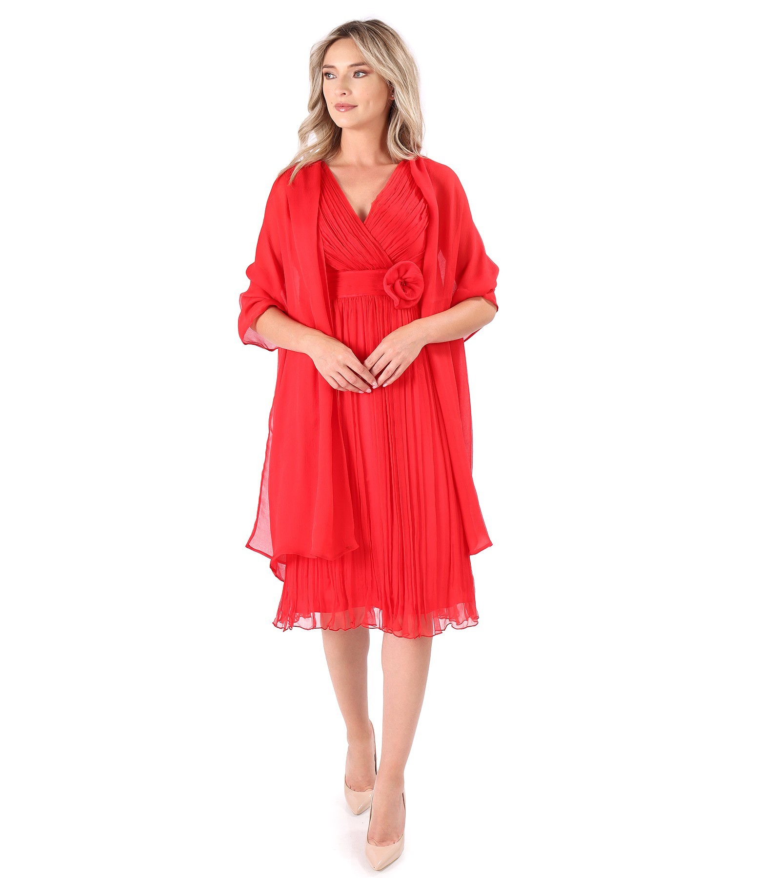 Wrap made of natural silk veil, rectangular in shape, doubled with the same material, with heart-shaped crystal appliqués. Size 65cm wide, 220cm long.