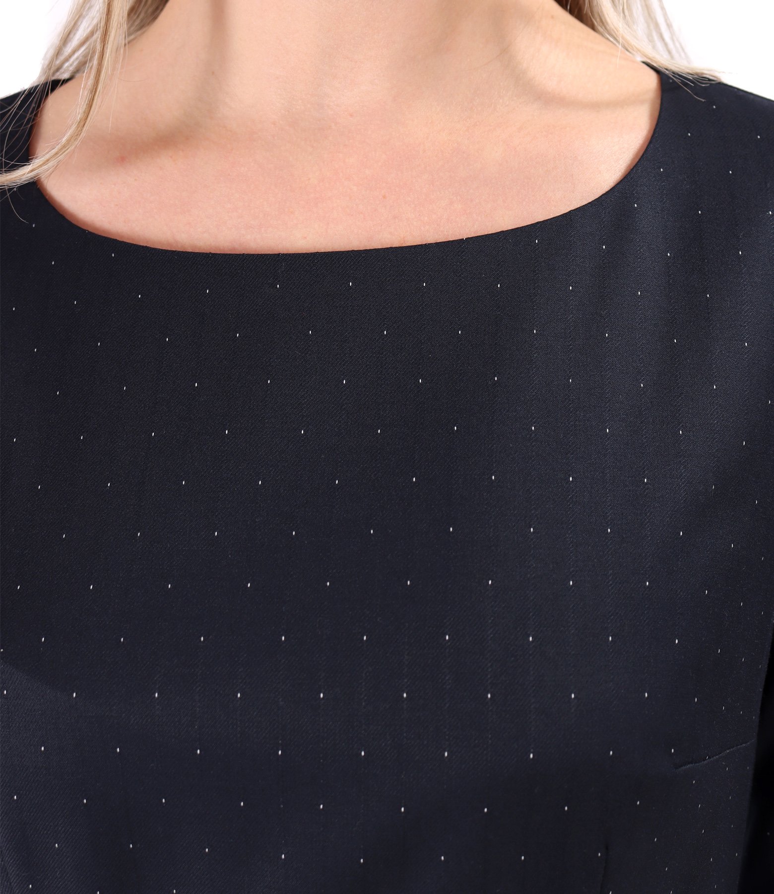 Office dress made of fabric with polka dots (Navy blue), size