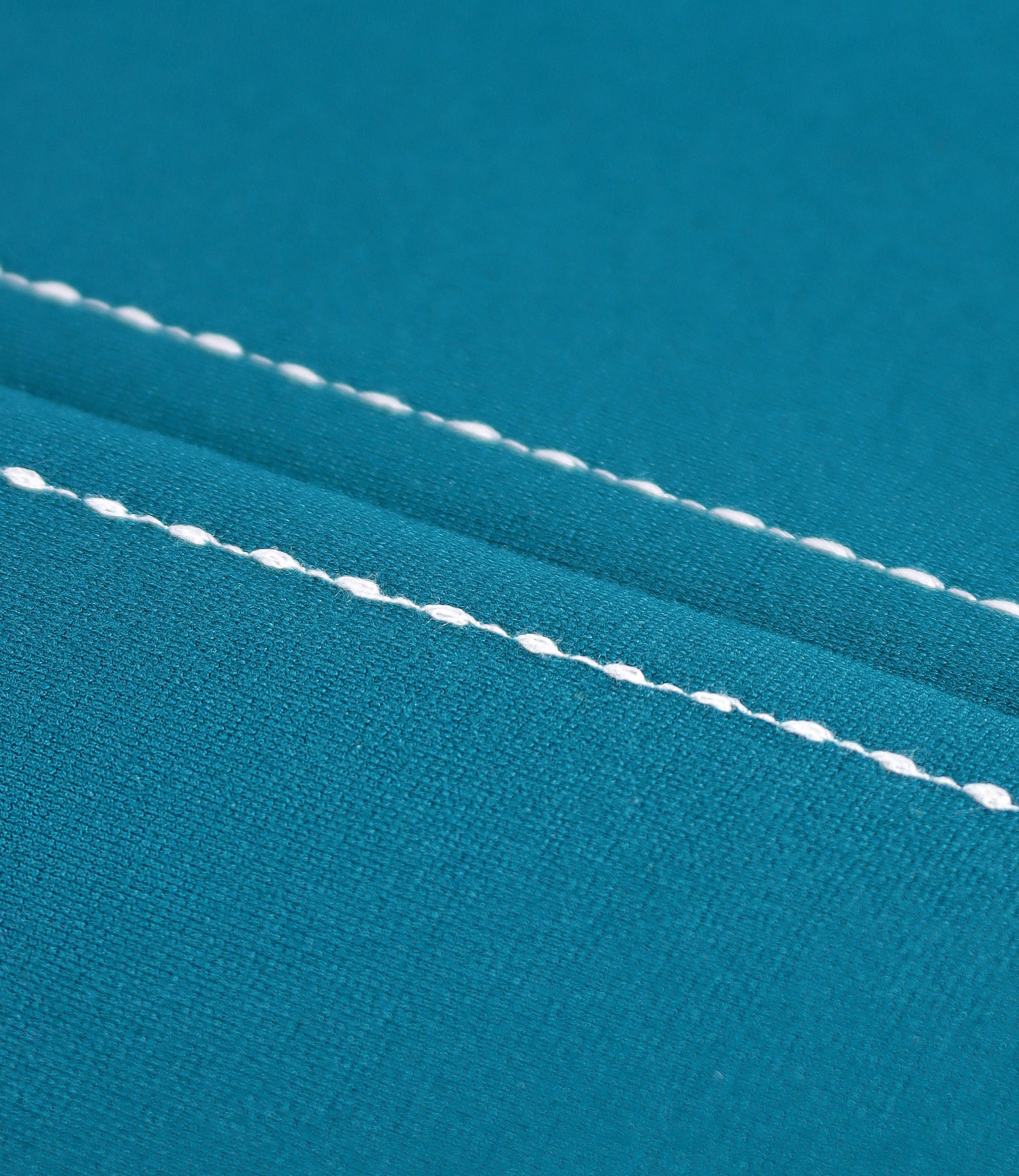 Office dress made of thick elastic jersey, unlined, 3/4 sleeves, collar, and decorative seam in contrast on the middle of the front. It closes with a hidden zipper in the middle of the back.