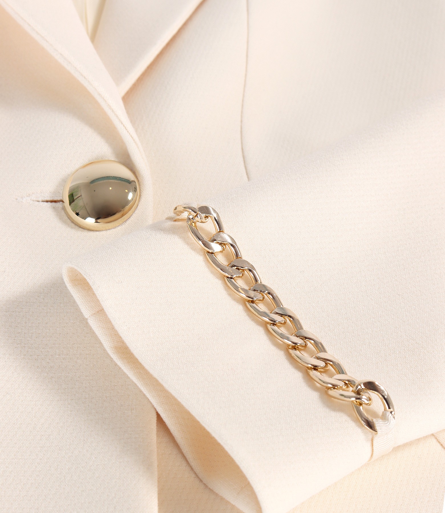 Office jacket in elastic fabric with decorative chain (Ivory), size
