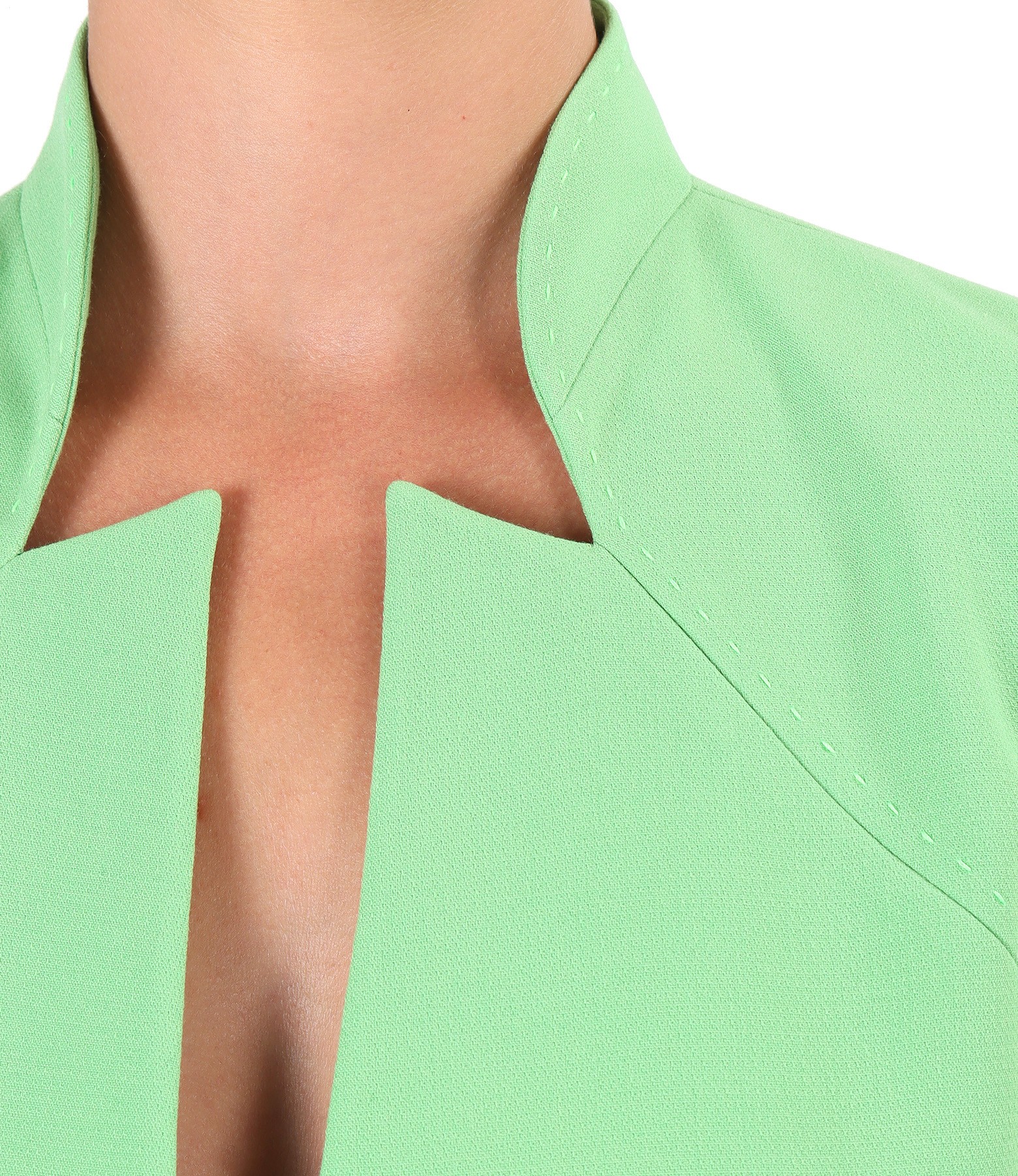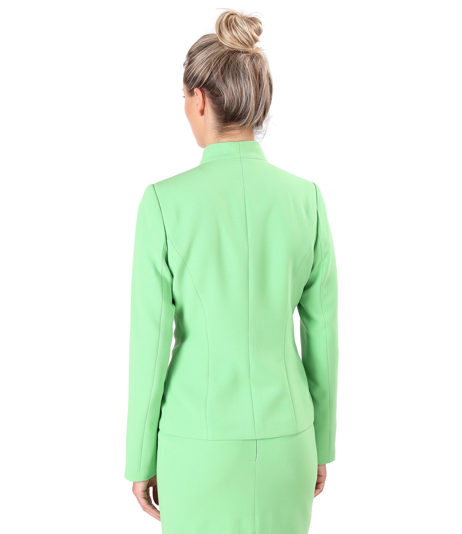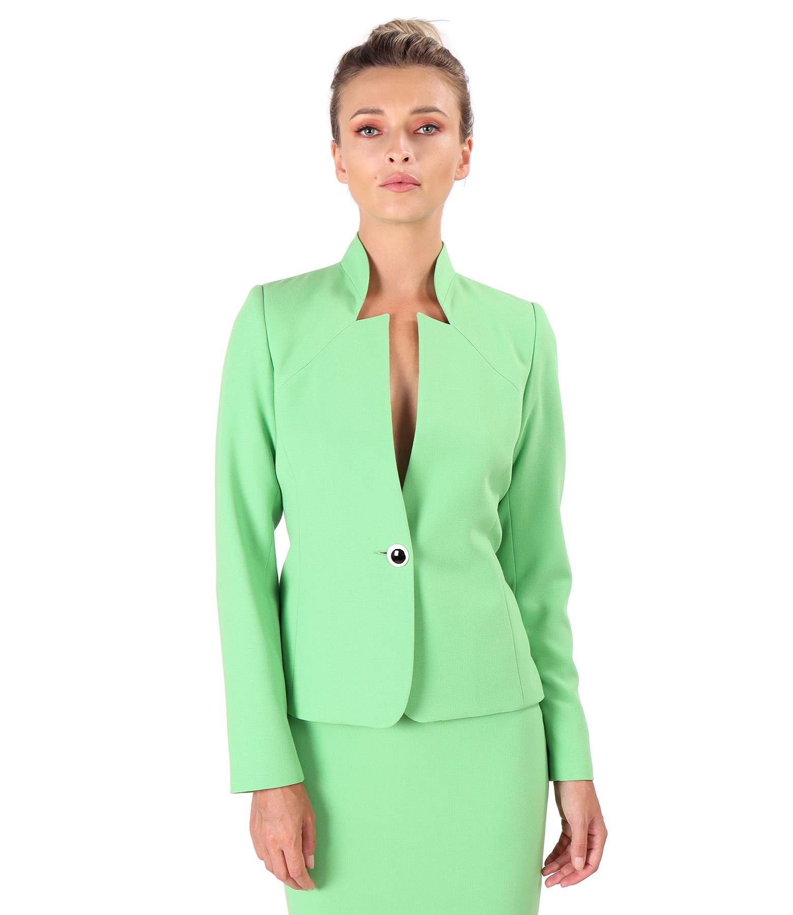 Office jacket made of elastic fabric, padded, with collar like tunic. It closes with a button on the middle of the face.