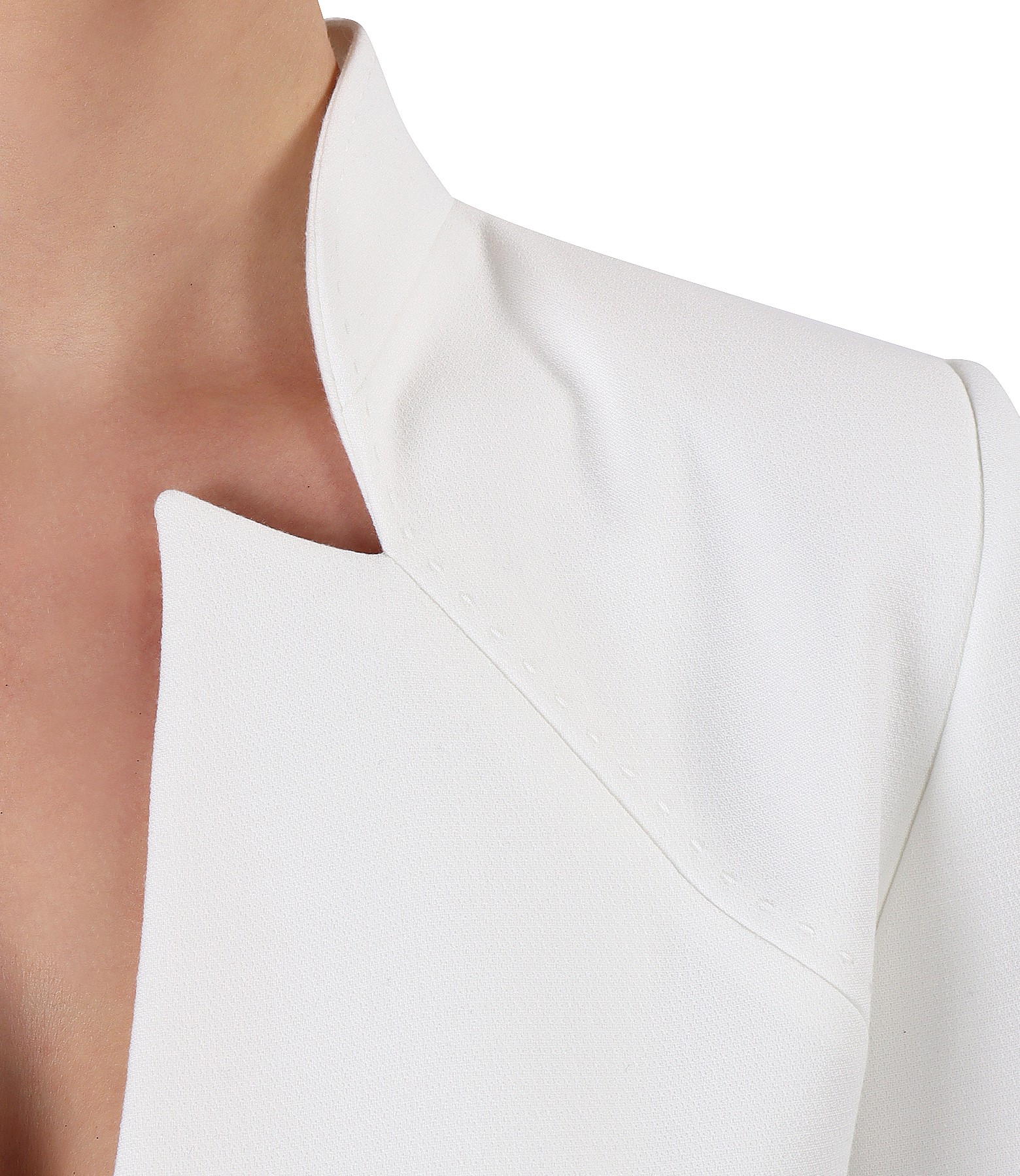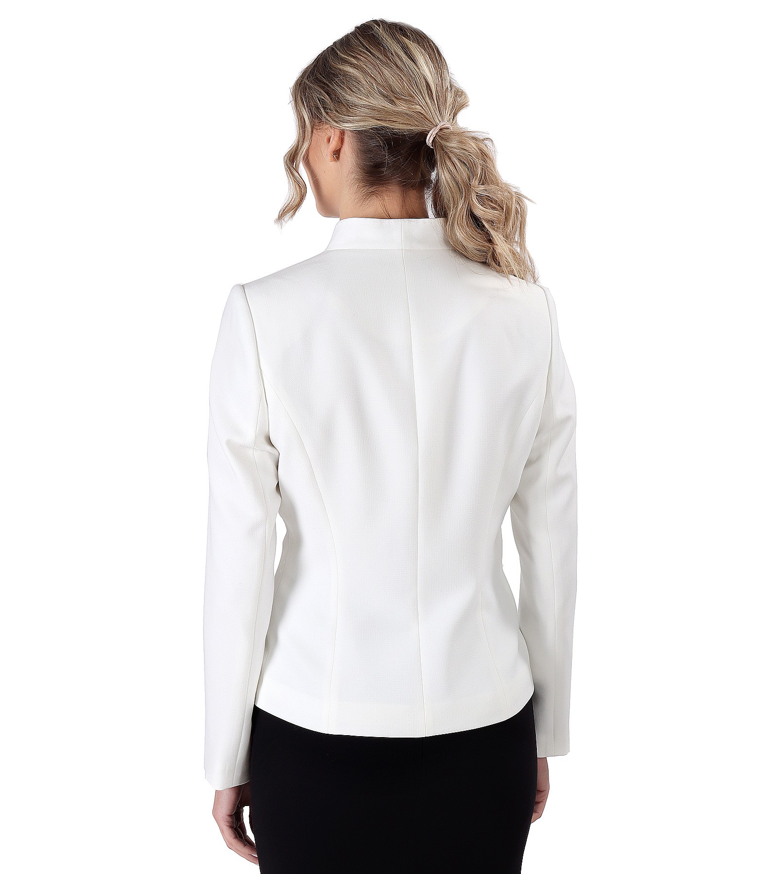 Office jacket made of elastic fabric,padded,with collar like tunic.It closes with a button on the middle of the face.