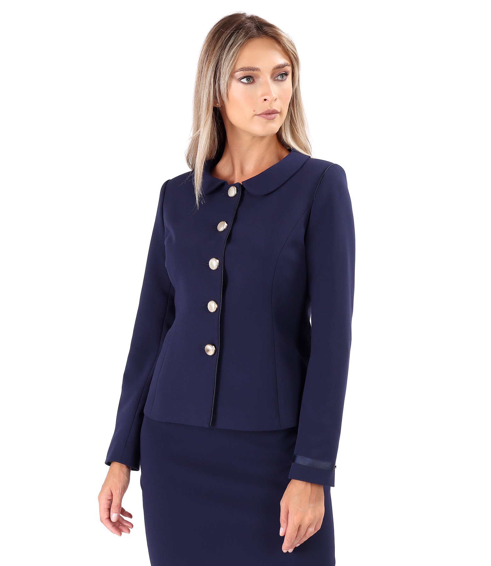 Office jacket made of elastic fabric with collar (Navy blue), size