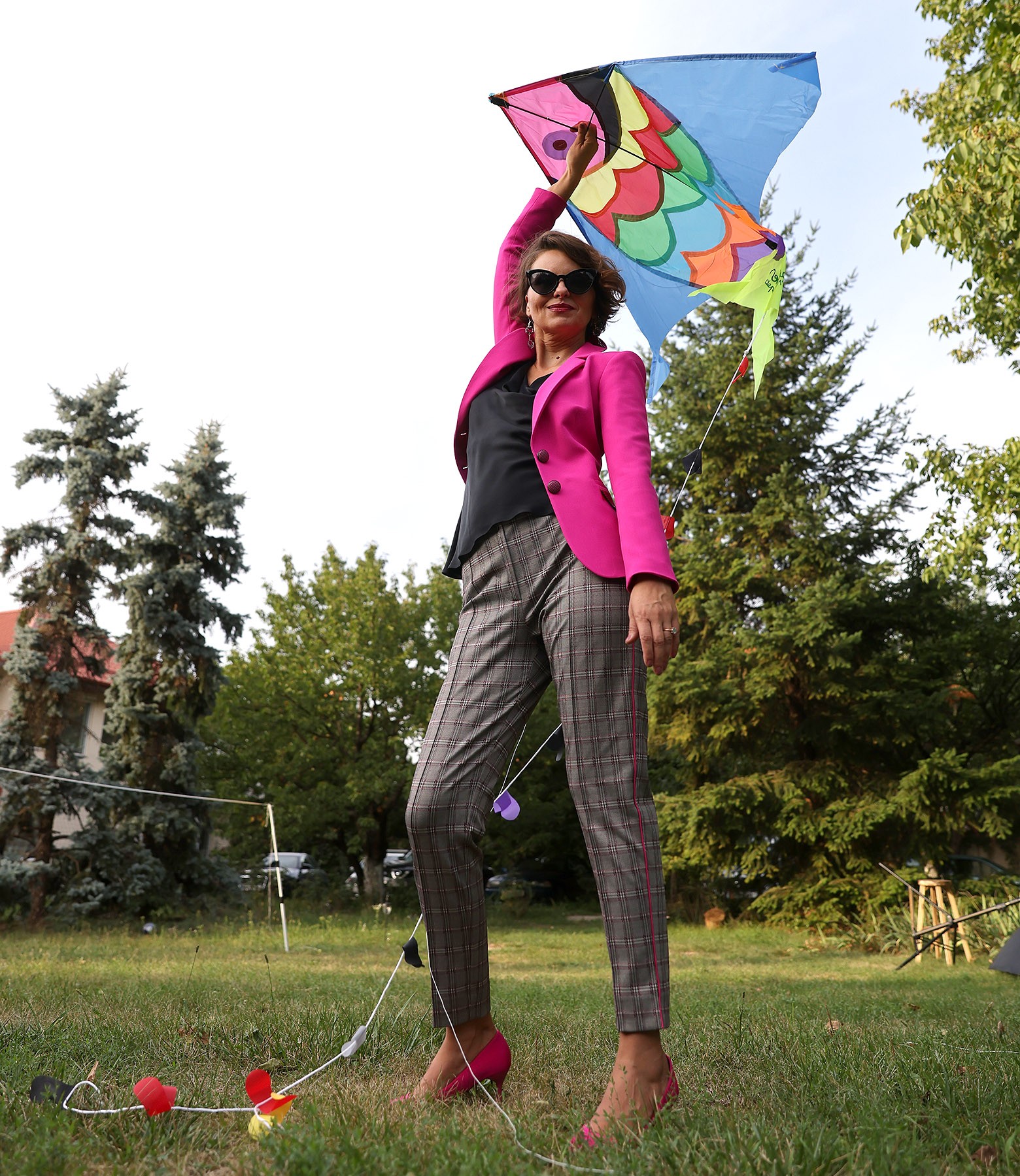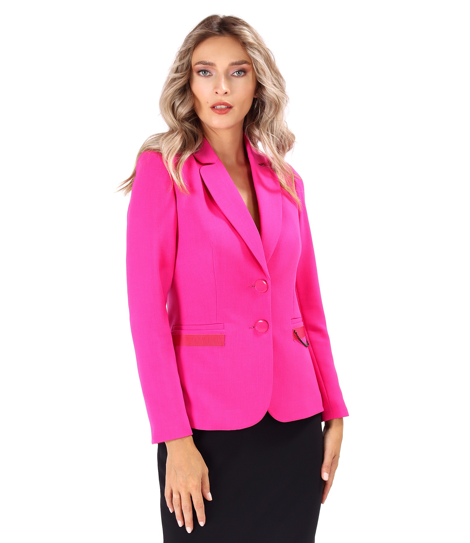 Office jacket made of elastic fabric with decorative chain (Cyclamen), size