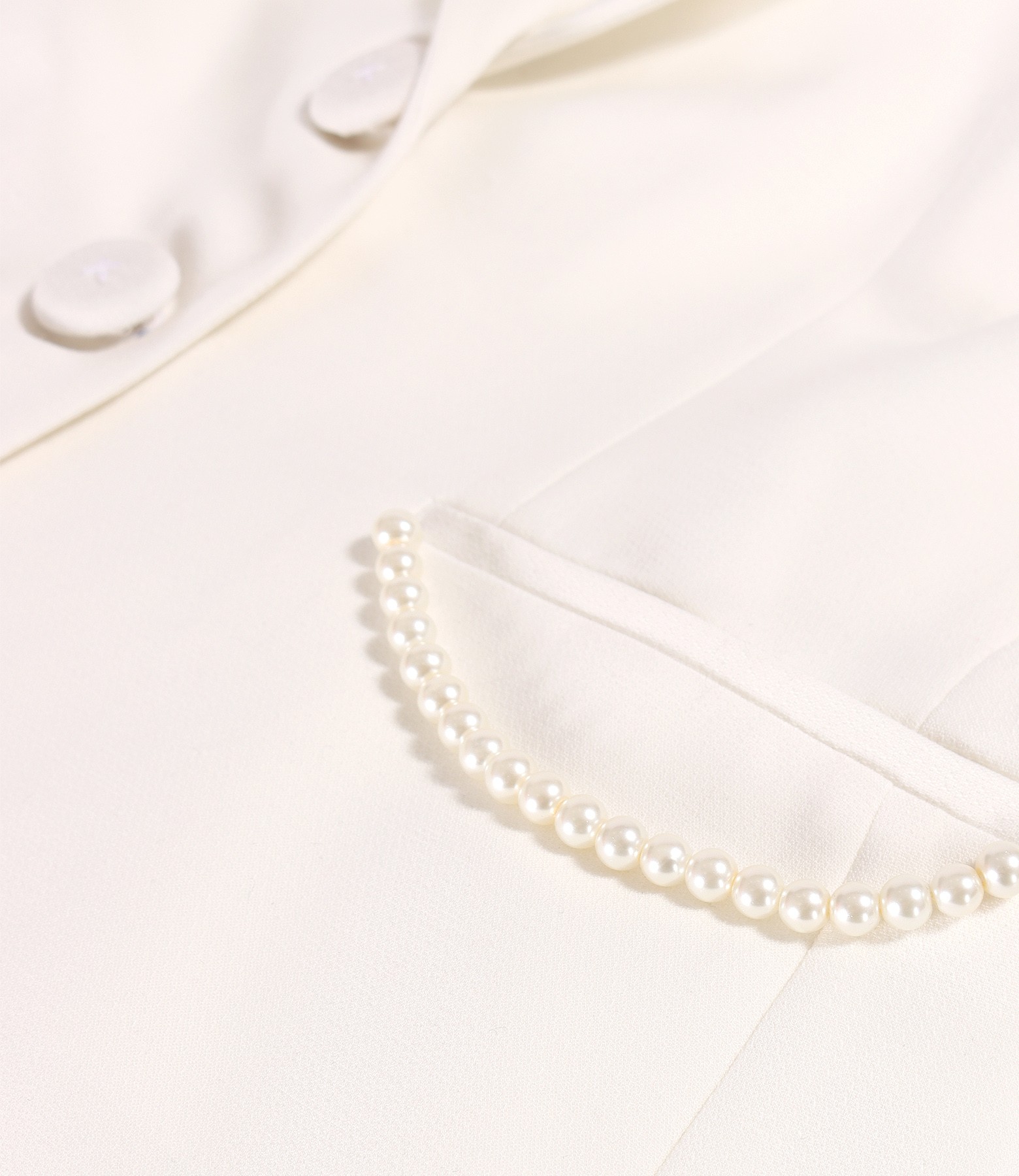 Office jacket made of elastic fabric with decorative pearls (Ivory), size