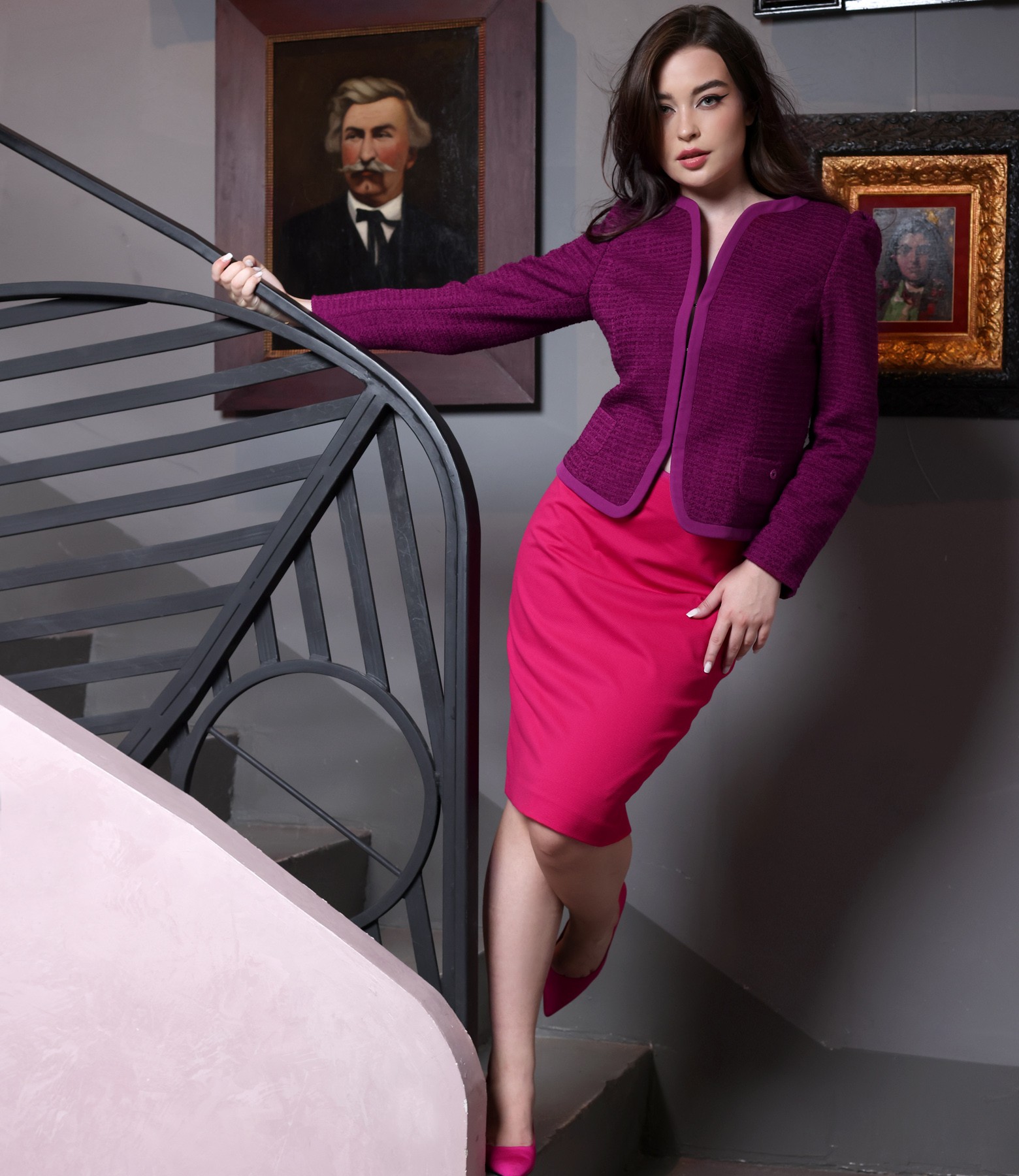 Office jacket made of loops with viscose and cotton (Magenta), size