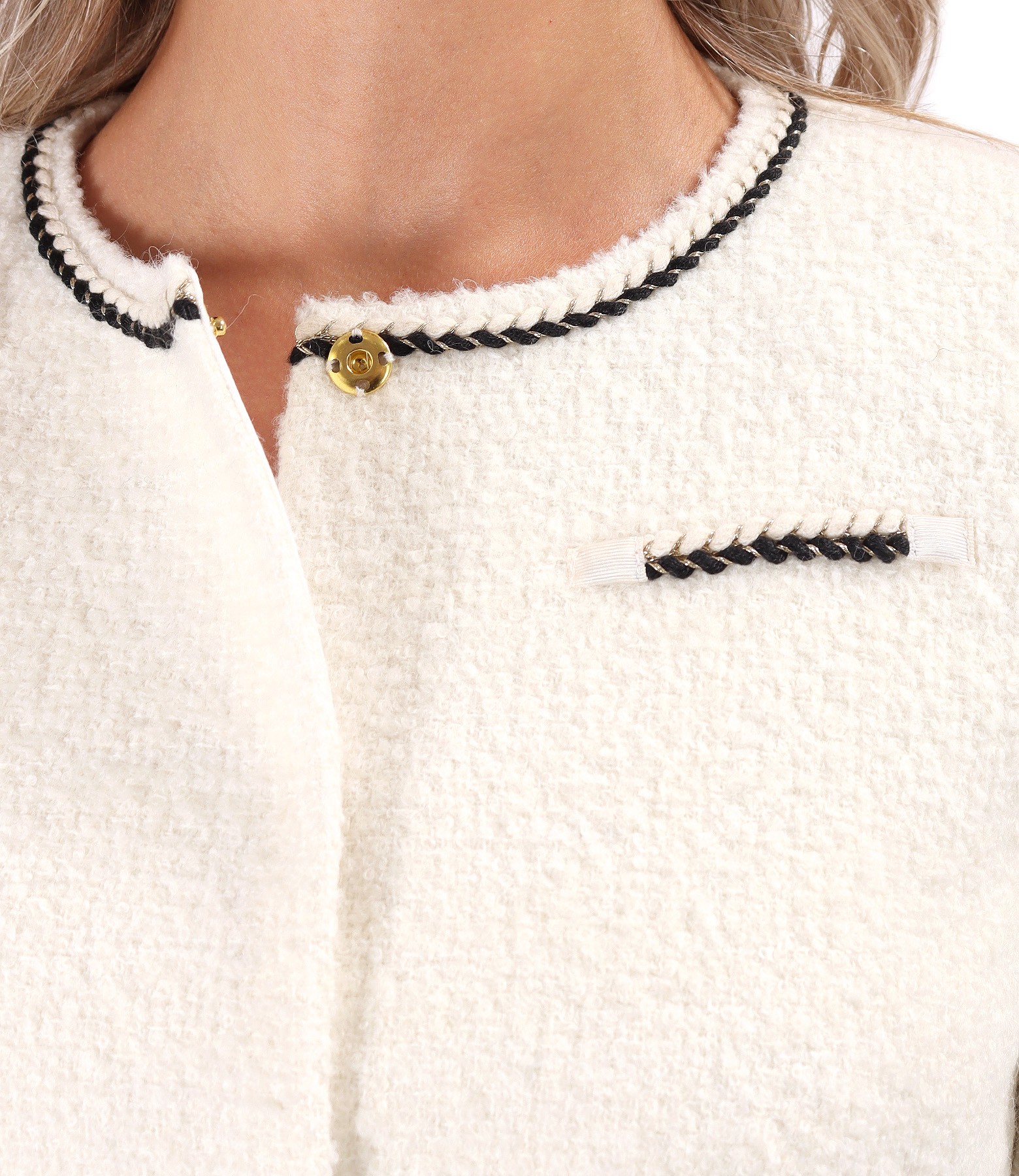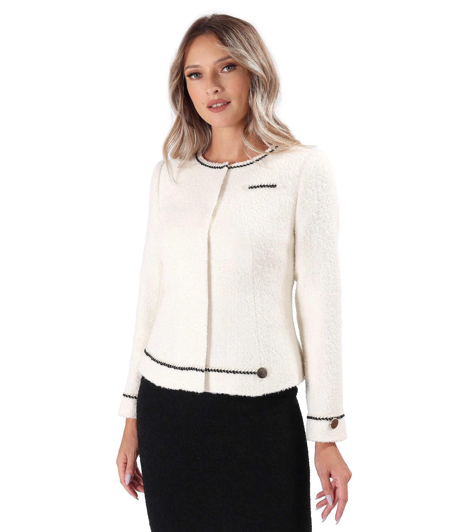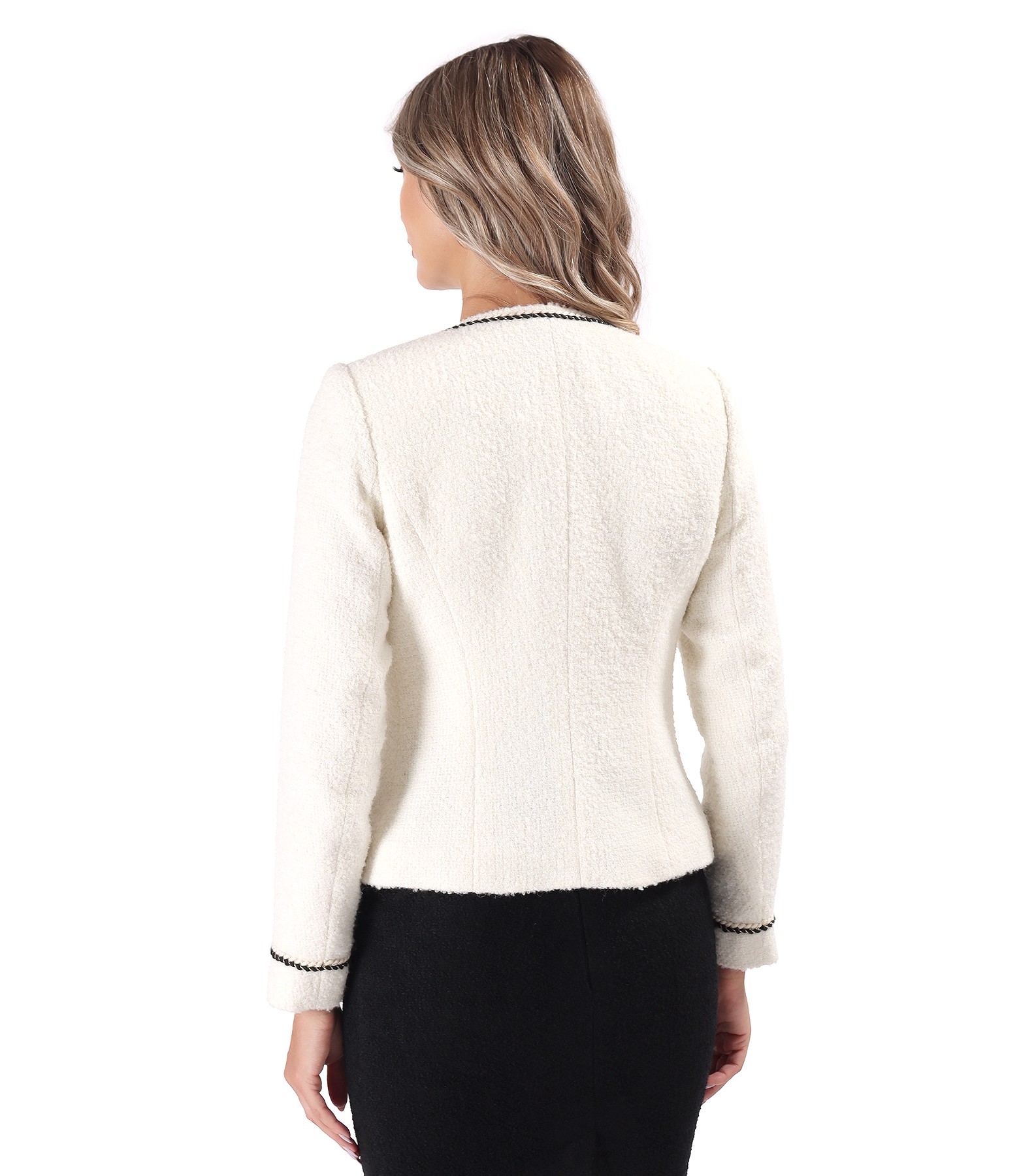 Office jacket made of loops with wool and trimmings (Ivory), size