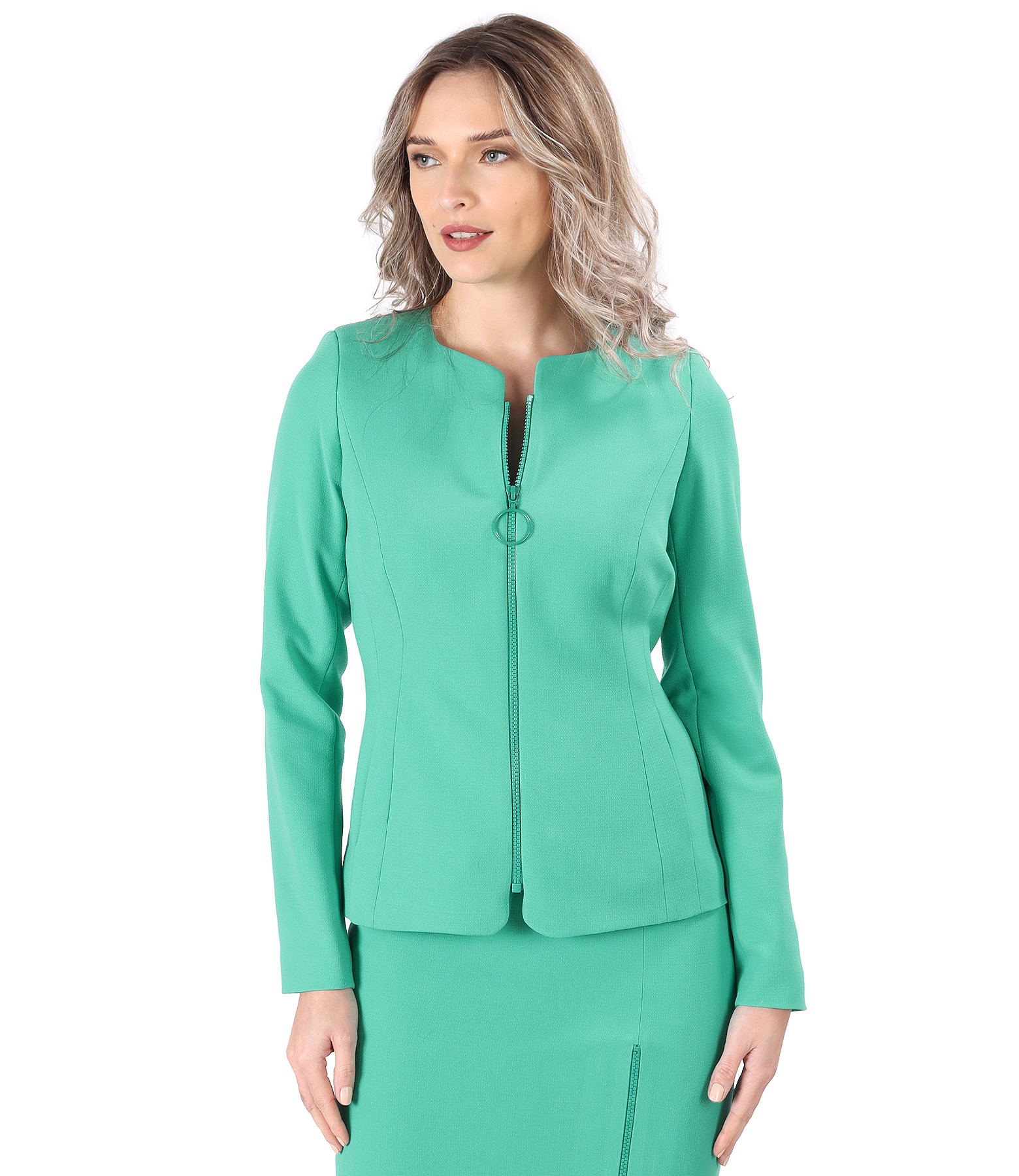 Office jacket made of elastic fabric, padded, with side pockets. Closes with metallic zipper on the middle back.