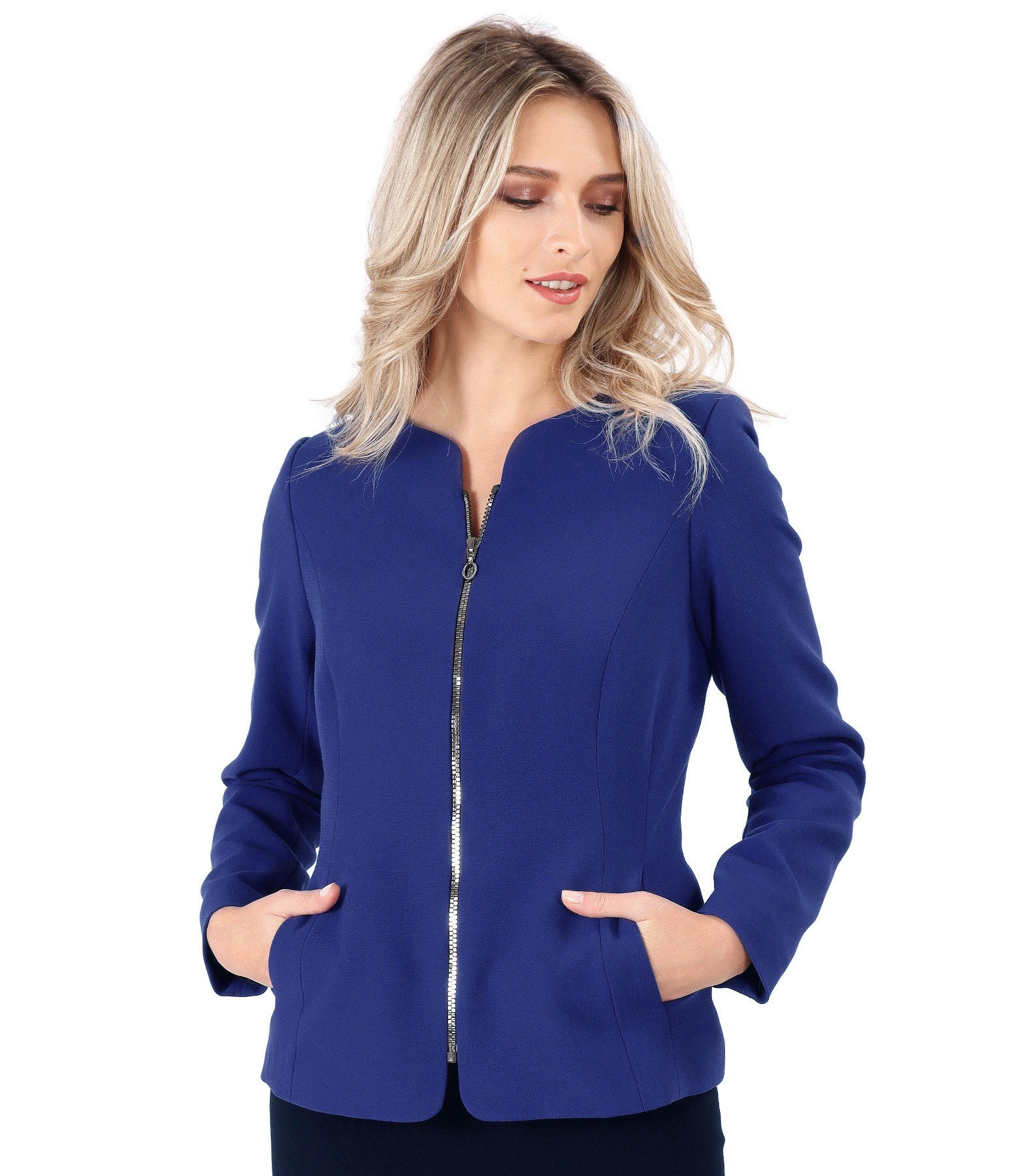 Office jacket made of elastic fabric, padded, with side pockets. Closes with metallic zipper on the middle back.